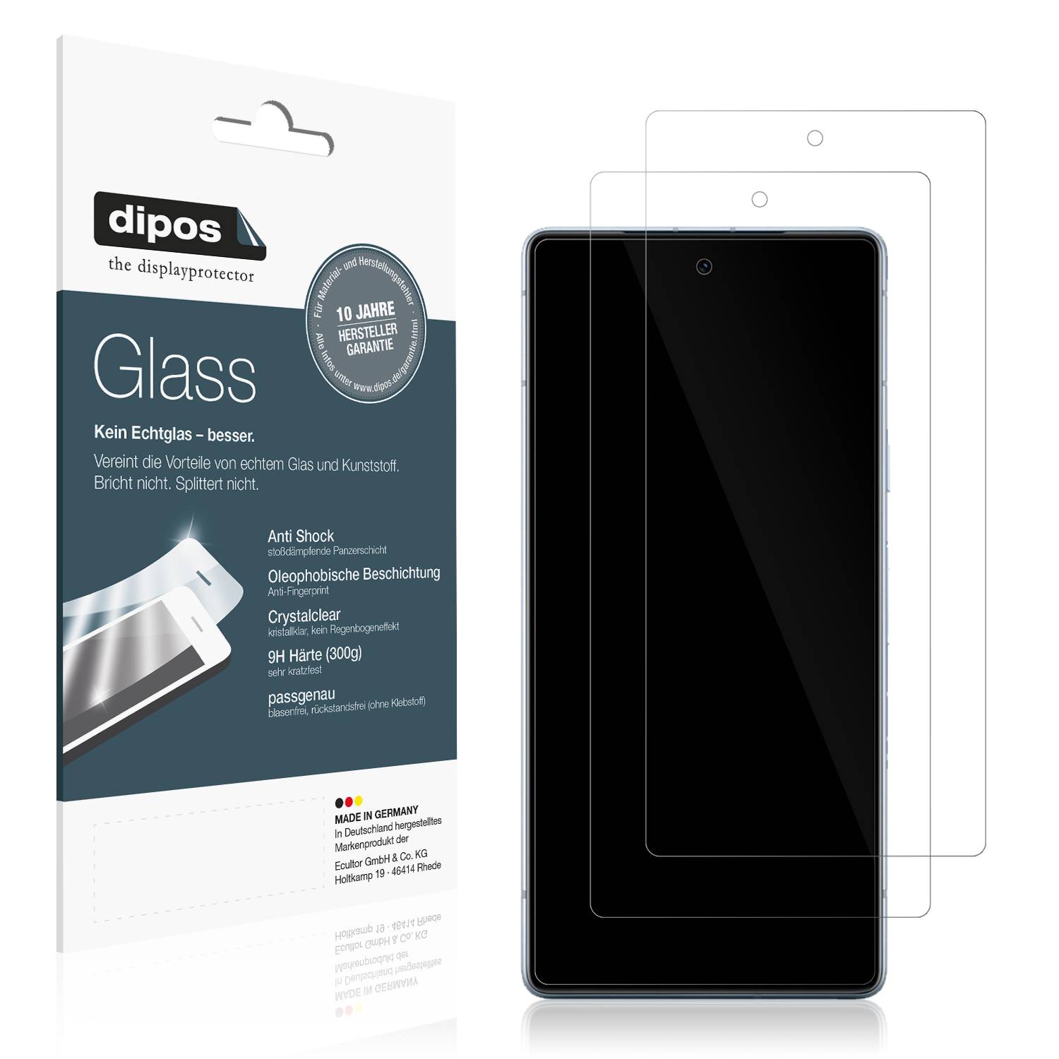 9H Härte (300g) und Anti-Shock-Schicht (stoßdämpfende Kratzschutzfolie) - 10 Jahre Herstellergarantie.