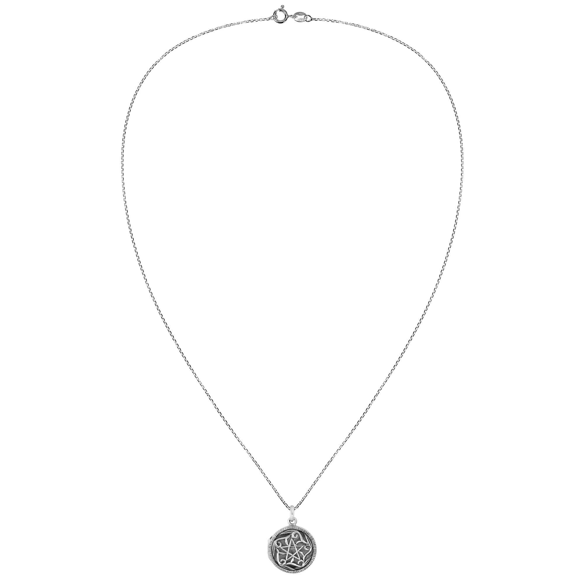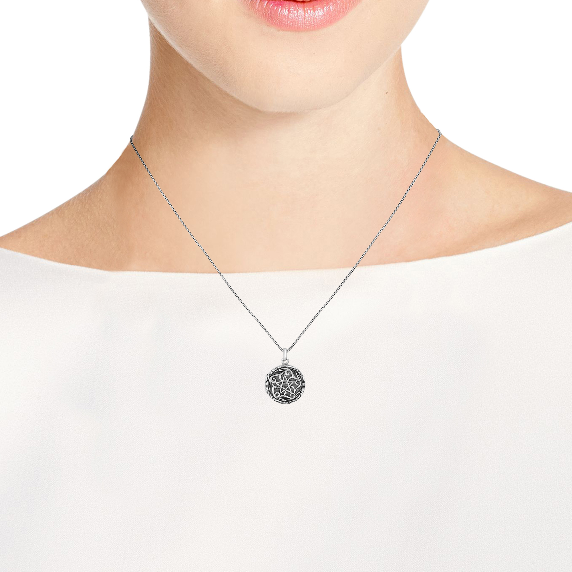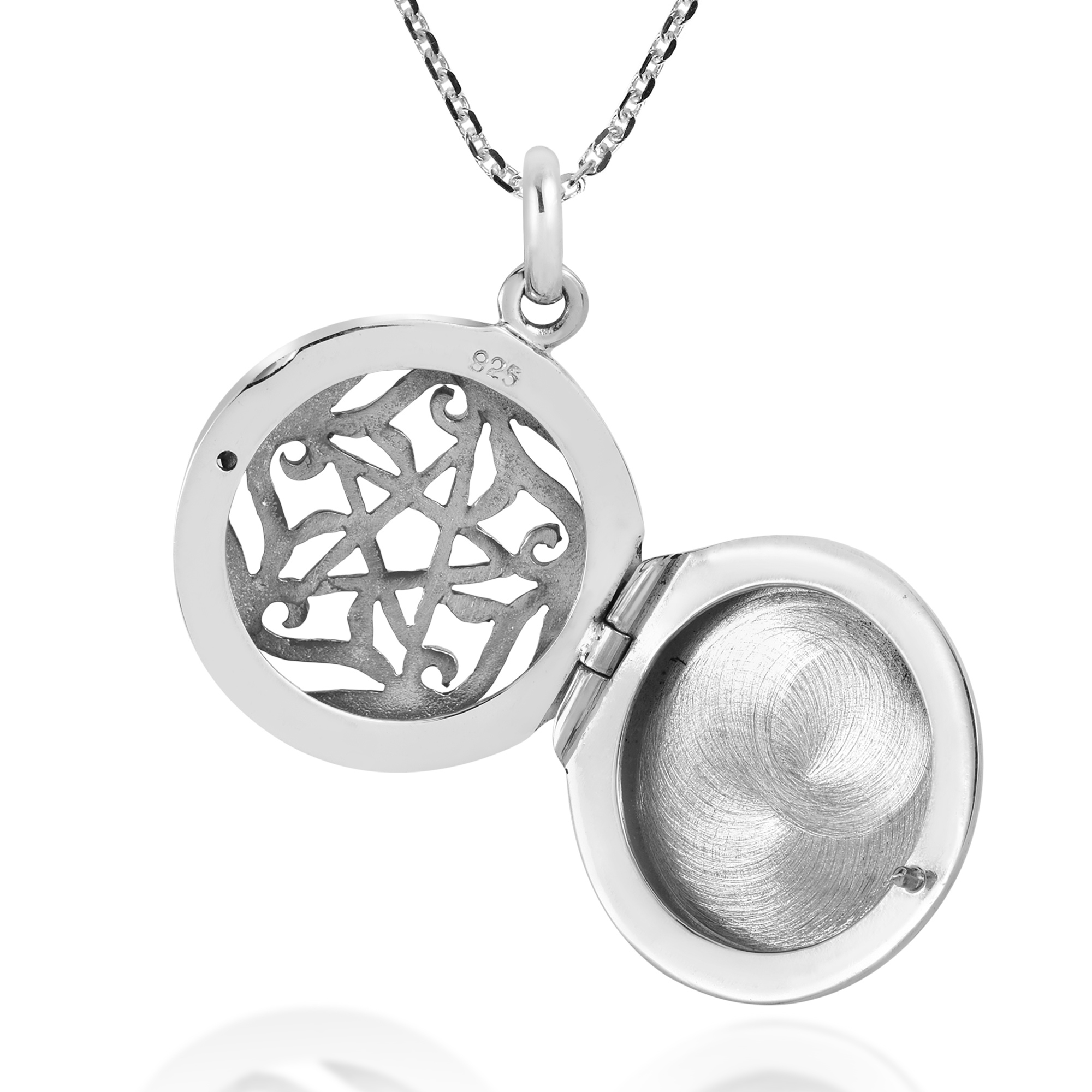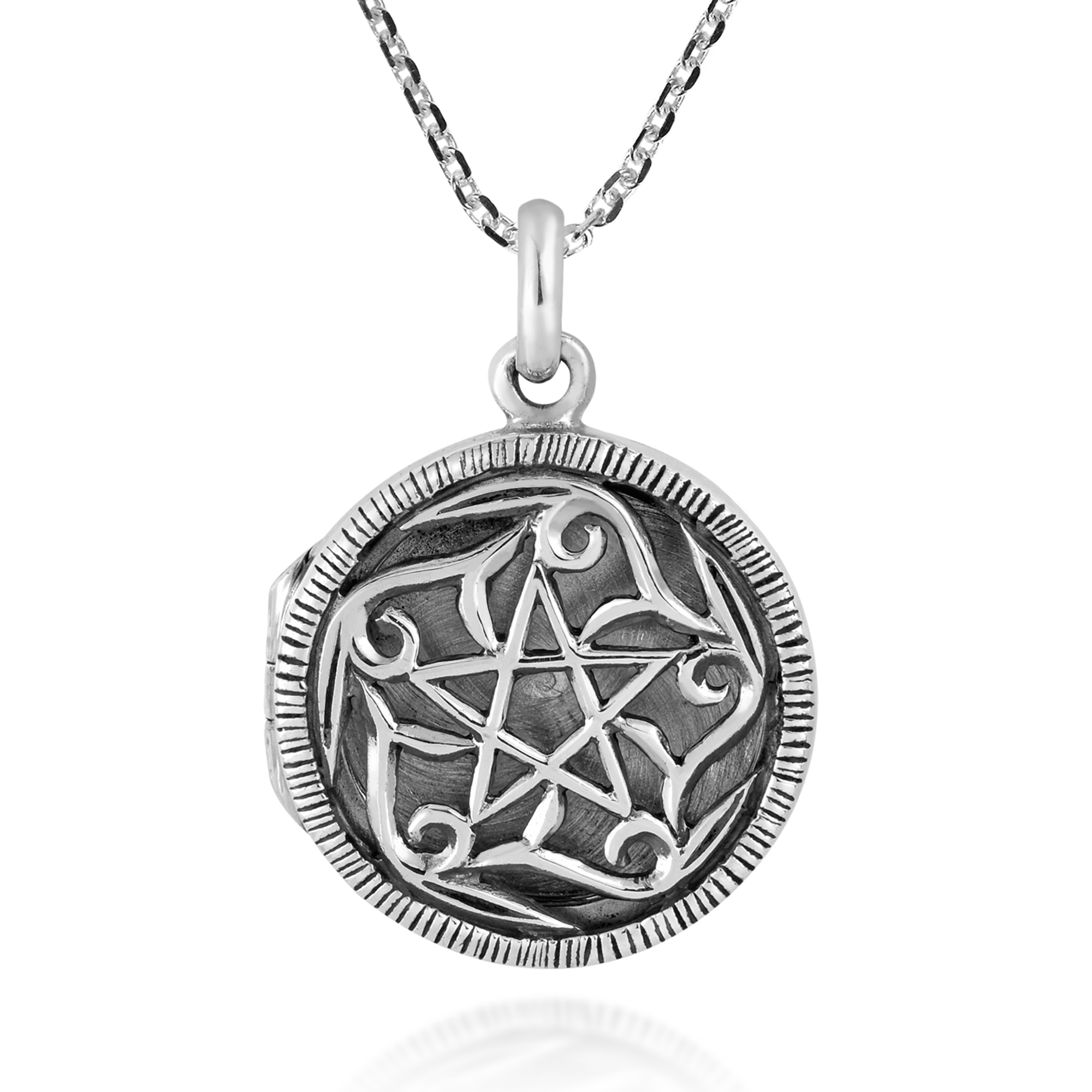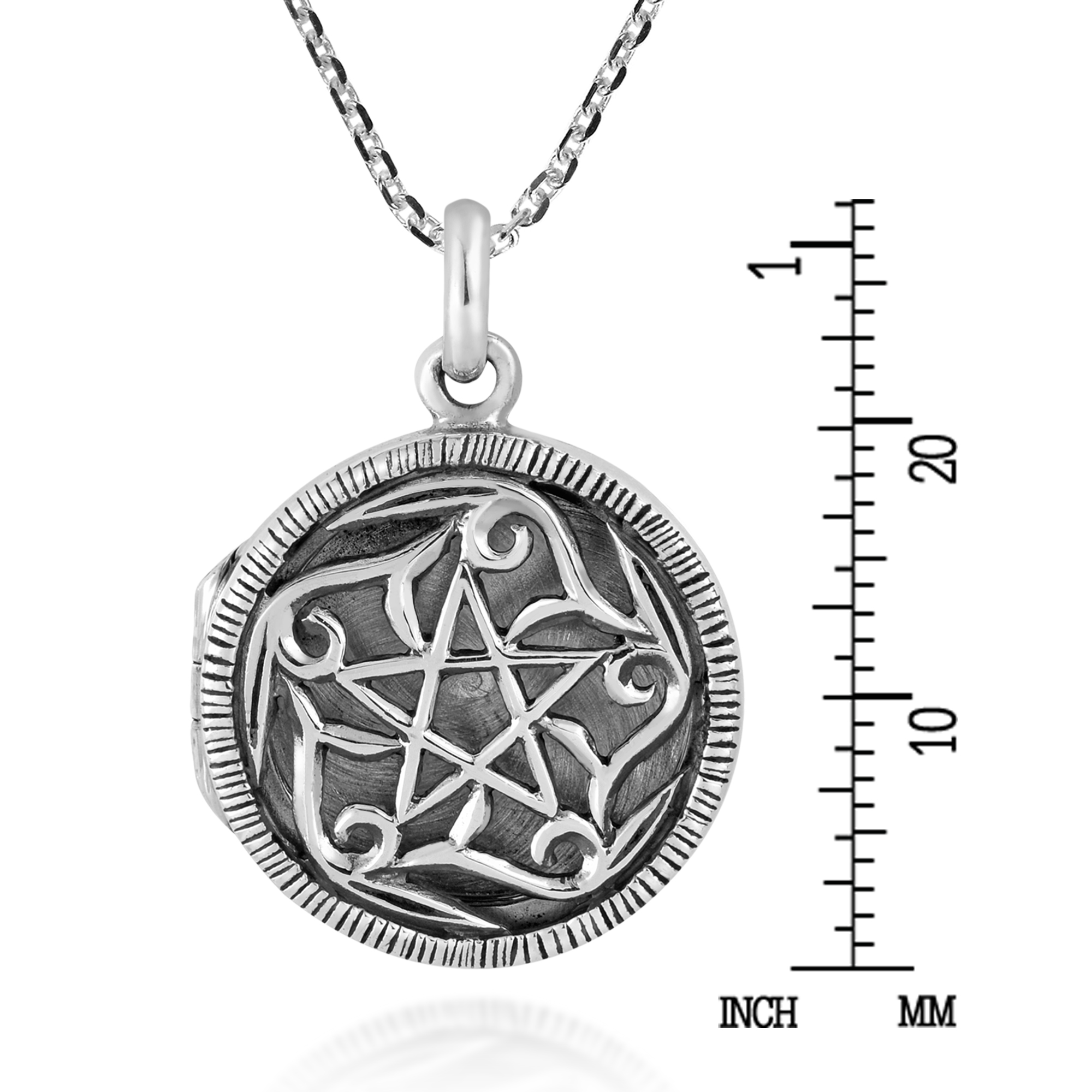 Vintage Pentagram Pentacle Round Sterling Silver Locket Pendant Necklace |