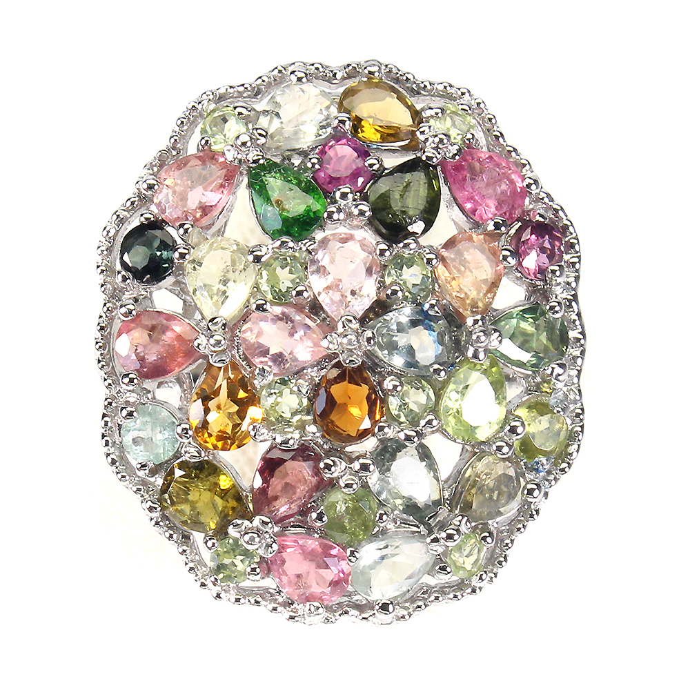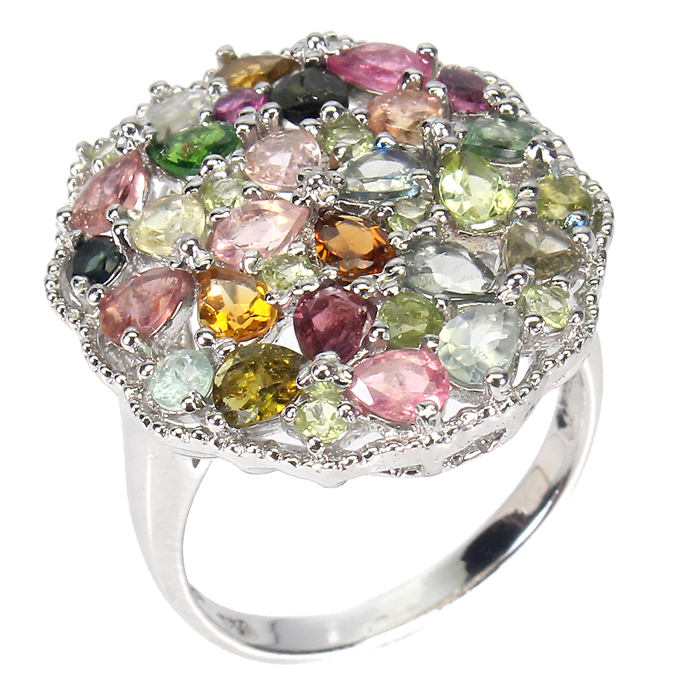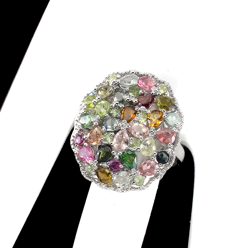 Unheated Pear Tourmaline Peridot White Gold Plate 925 Sterling Silver Ring 8.5