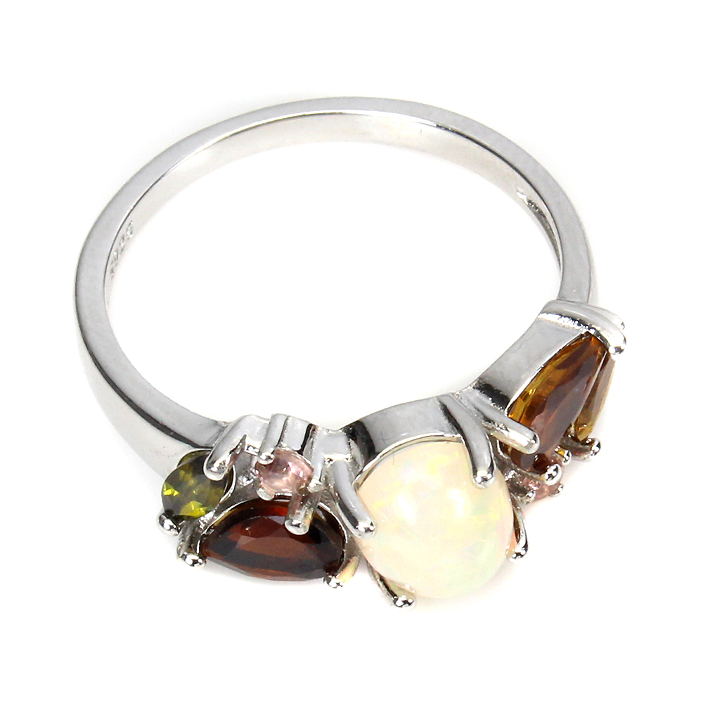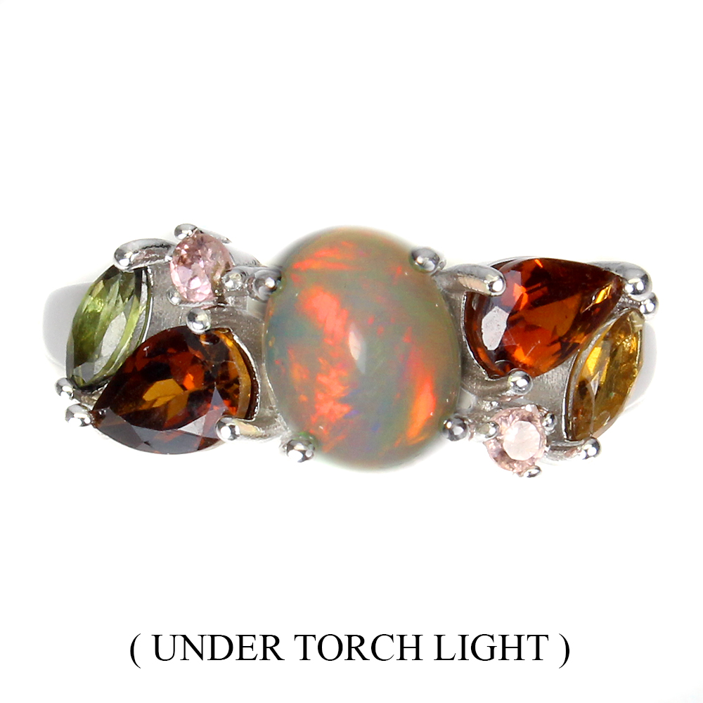 Unheated Oval Fire Opal 8x6mm Sapphire Tourmaline 925 Sterling Silver Ring 8
