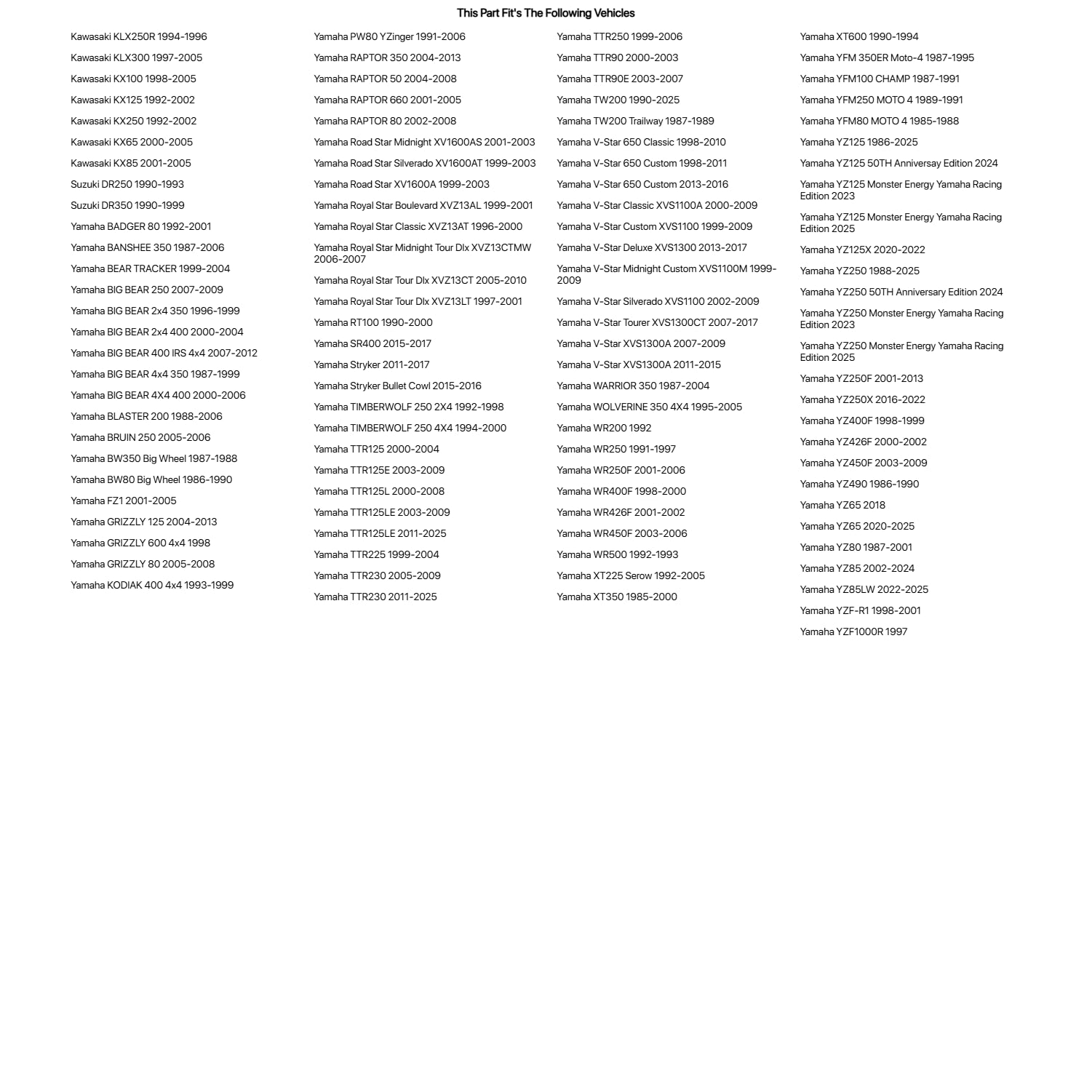 Tusk Petcock Rebuild Kit For YAMAHA WARRIOR 350 1987-2004