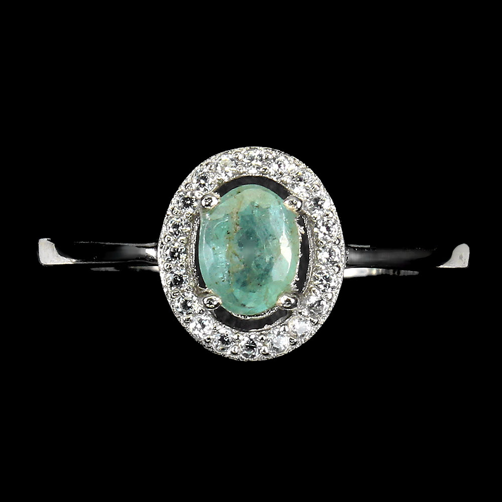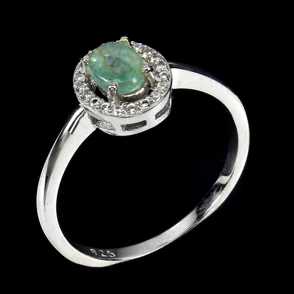 Unheated Oval Green Emerald 5x4mm Simulated Cz 925 Sterling Silver Ring Size 7
