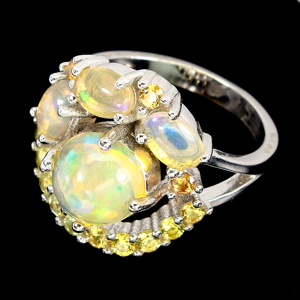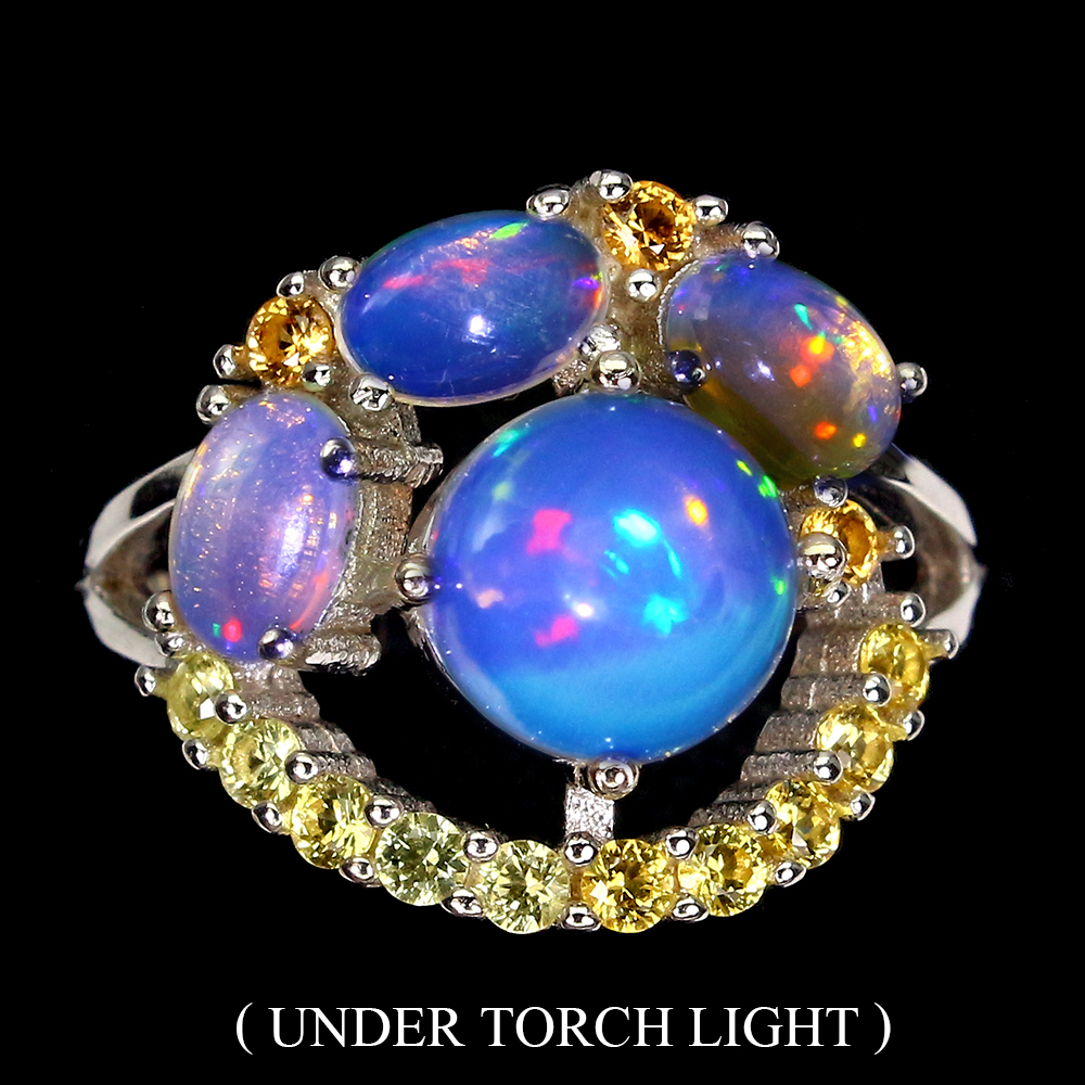 Unheated Round Fire Opal 8mm Sapphire Diamond Cut 925 Sterling Silver Ring 8