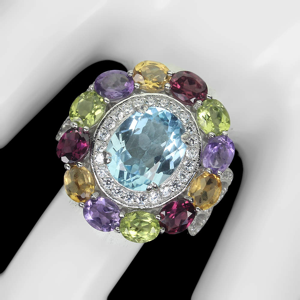Irradiated Oval Sky Blue Topaz 11x9mm Amethyst Ruby 925 Sterling Silver Ring 9