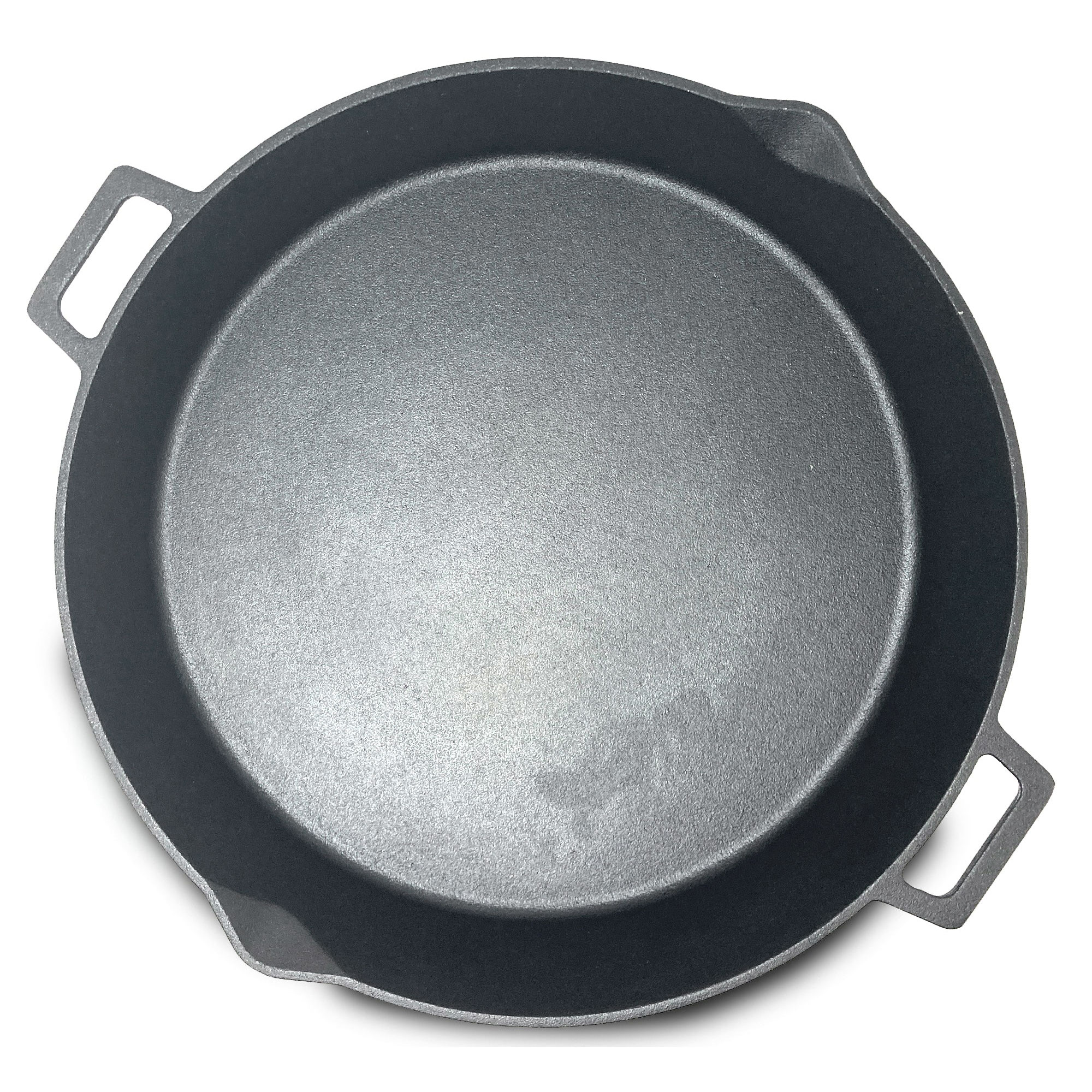 Bring some delicious flavoring to your cooking with the Classic Double Handled Cast Iron Skillet from Bayou, an ideal addition to home kitchens for searing and braising.