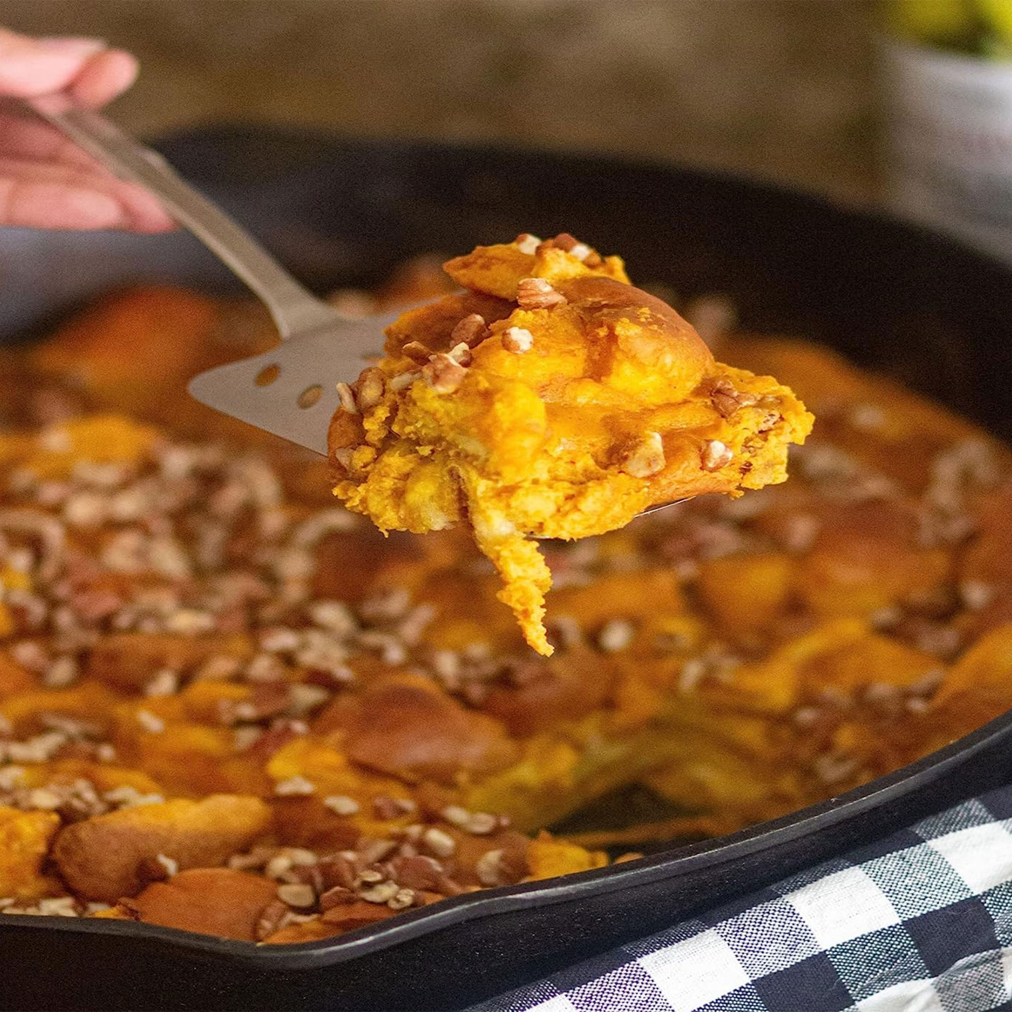 From breakfast feasts to roast chicken dinners, this cast iron skillet is the ultimate cooking companion. Made from sturdy cast iron, the kitchen appliance protects against burning and gives you a solid, evenly heated space to cook. Featuring pour spouts on each side of the skillet, you'll be able to add flavorful sauces that you've got cooking up with ease, while the double handles provide a convenient hold while you dish it out.