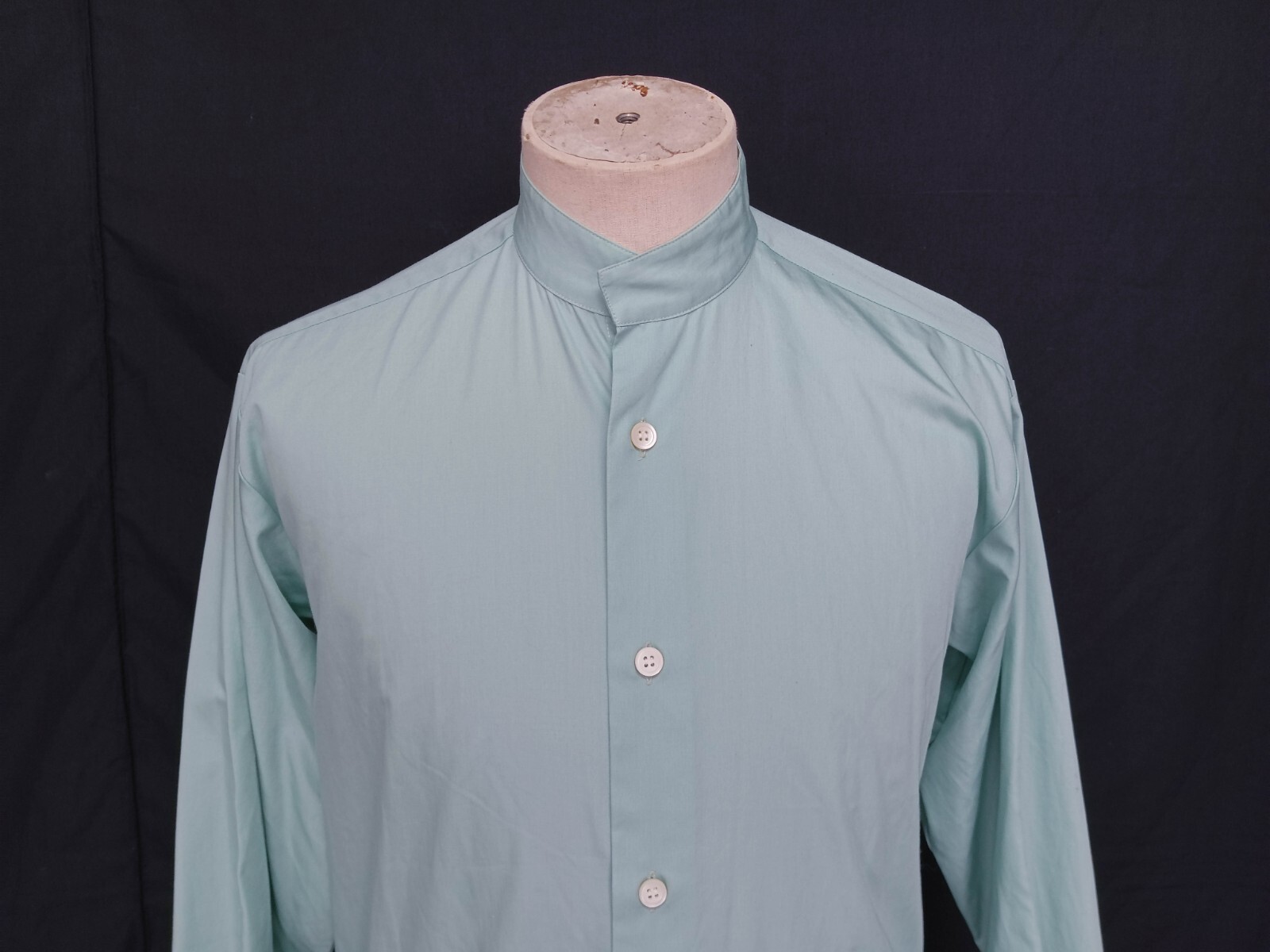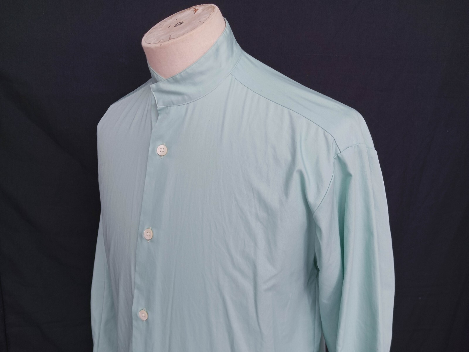 Awesome vintage ISSEY MIYAKE Design Studio solid aqua blue men's casual shirt long sleeves with buttons front authenticity guaranteed. The shirt has band collar (collarless) with 6 buttons closure on front. The color is aqua blue with solid pattern. Fabric is 100% cotton. The shirt is pre-owned still in good condition, pin hole on sleeve of the shirt. Please see the photos. It has been laundered clean and fresh ready to wear. Don't miss out cool and awesome shirt.