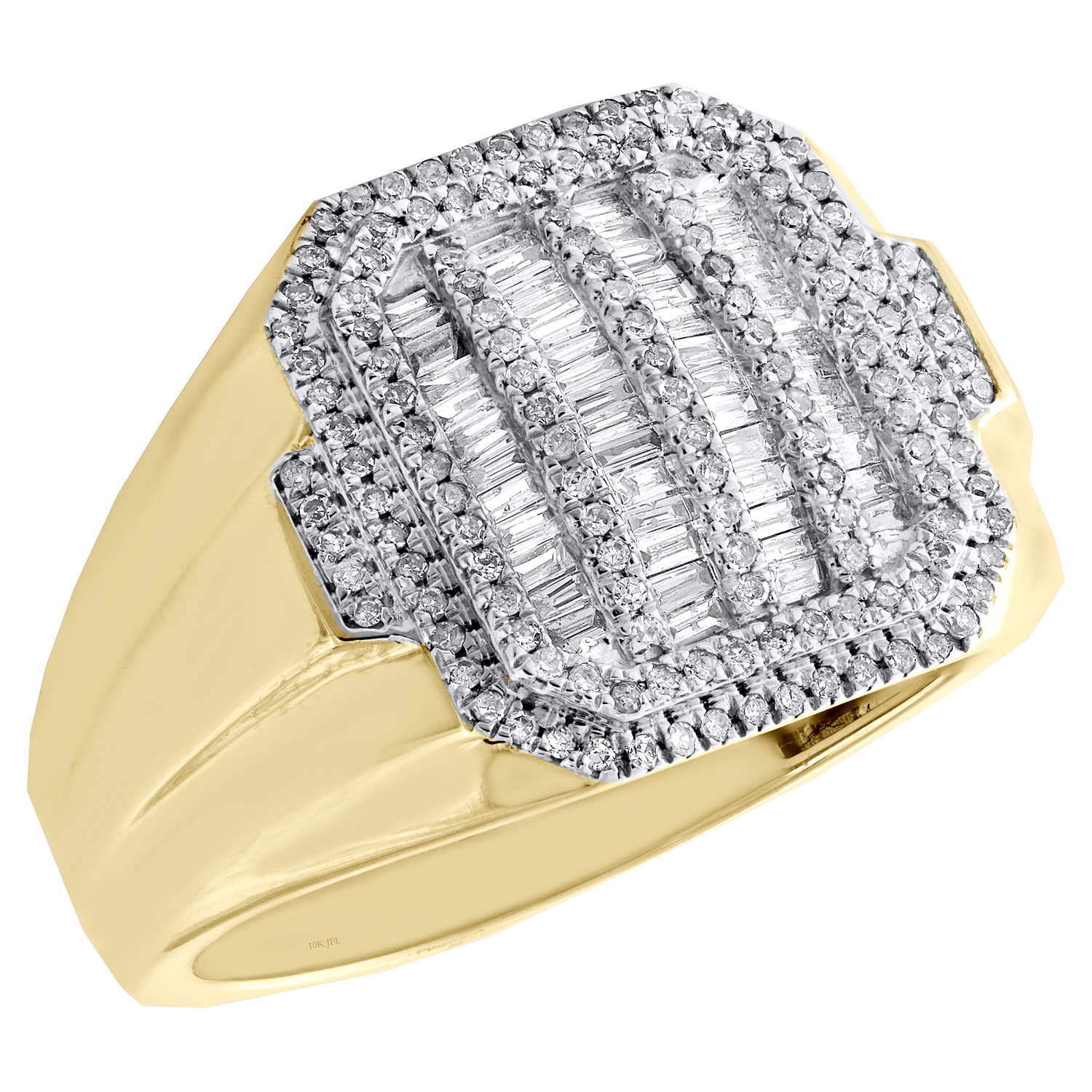 (8.6 gr. of 10K Yellow Gold | Total Carat Weight: 0.67 ct. t.w. of White Diamonds | Width: 16mm | Ring Size: 10 | Clarity: I1 - I2 | Color: H - I | Men's Round and Baguette Diamond Octagon Frame Statement Pinky Ring Band)