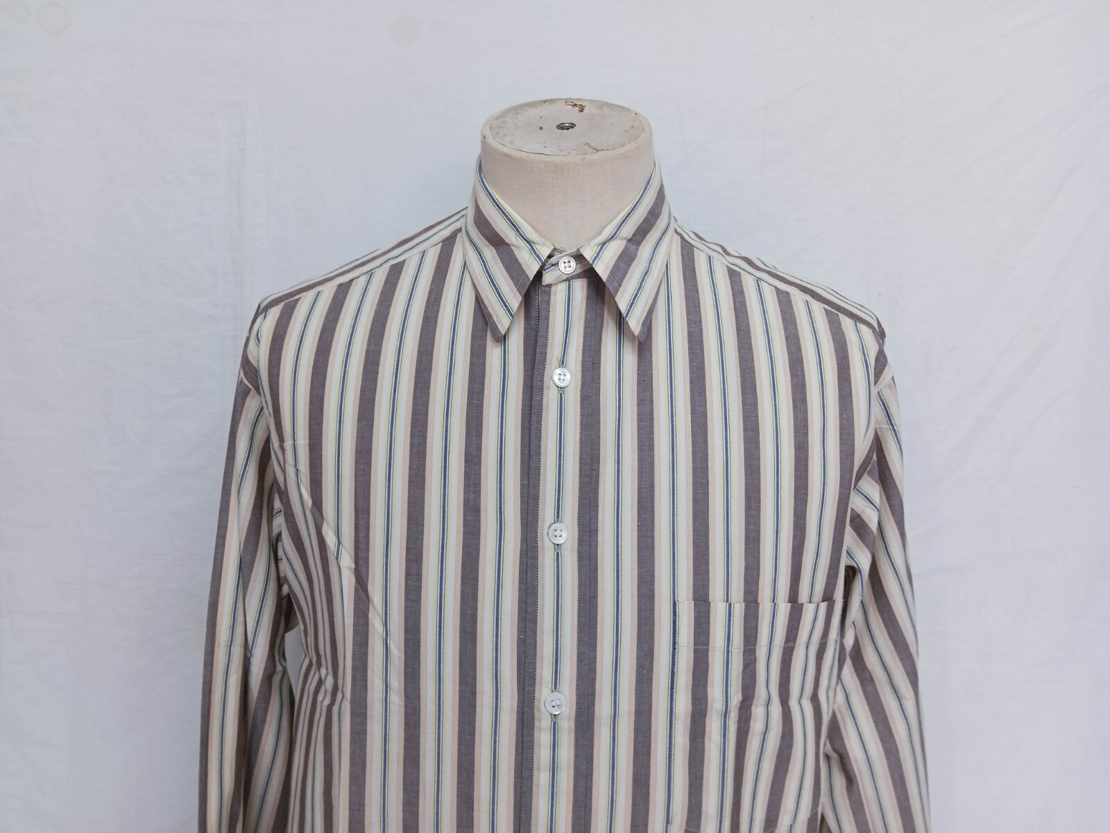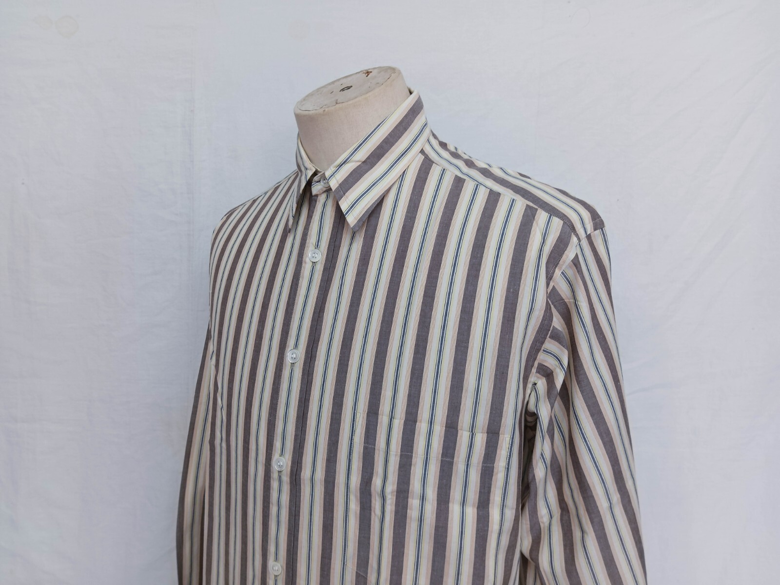 Awesome vintage Christian Dior Monsieur multicolor striped men's casual shirt authenticity guaranteed. Check out awesome vintage designer shirt long sleeves with buttons front. The shirt has point collar, single chest pocket with 7 mother of pearl buttons closure on front. The color is brown, ivory, yellow, gray with striped pattern. Fabric is 100% cotton. The shirt is pre-owned still in excellent condition. It has been laundered clean and fresh ready to wear. Don't miss out cool and awesome vintage designer shirt.