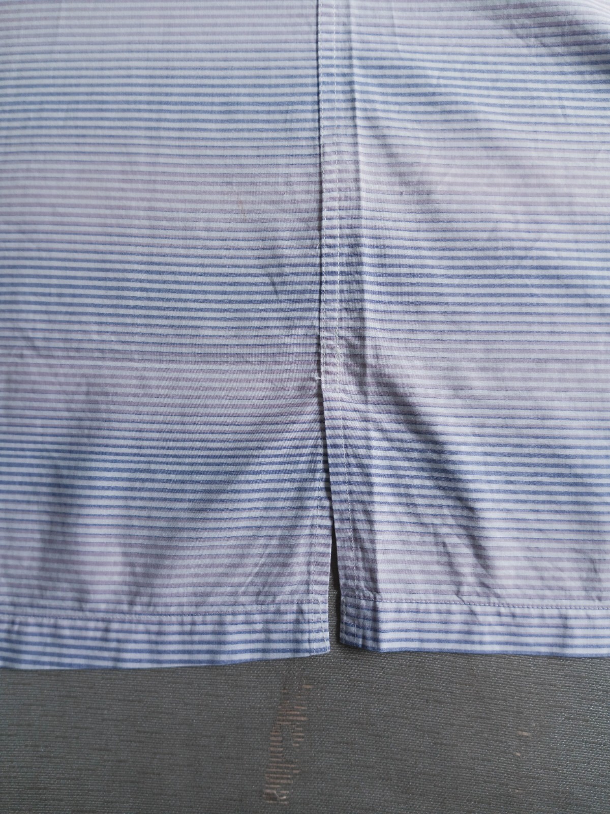 Cool LANVIN Collection purple pink white striped men's casual shirt short sleeve with buttons down authenticity guaranteed. The shirt has loop collar, single chest pocket with embroidered logo on left, 6 buttons closure on front. The color is purple, pink, white with striped pattern. Fabric is 100% cotton. The shirt is pre-owned still in excellent condition no holes, tears, stains. It has already laundered clean and fresh ready to wear. Don't miss out cool and awesome designer shirt.