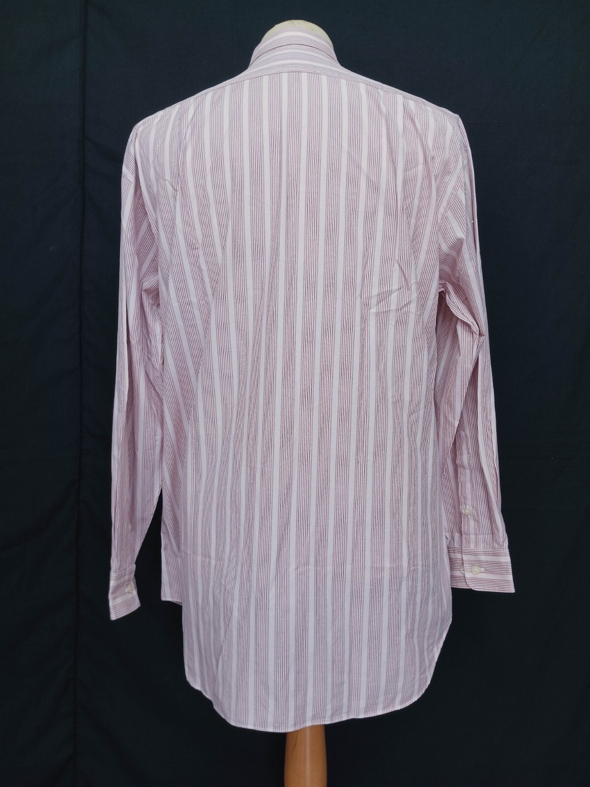 Luxury CELINE Paris pink striped men's dress shirt long sleeves with buttons front authenticity guaranteed. The shirt has point collar, rounded cuff, single chest pocket with embroidered logo on left, 7 buttons closure on front. The color is pink, white, wine, gold with striped pattern. Fabric is 100% cotton. The shirt is pre-owned still in excellent condition no holes, tears, stains. It has been laundered clean and fresh ready to wear. Don't miss out cool and awesome designer shirt.