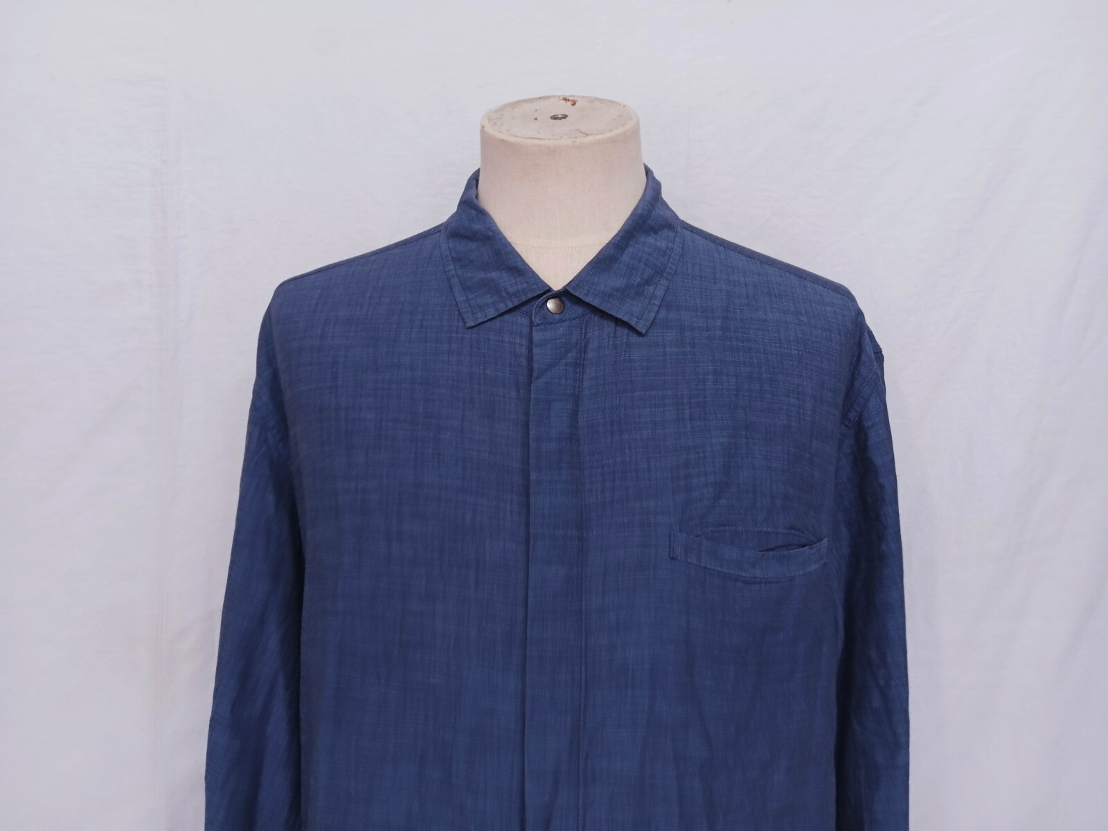 Awesome Armani Exchange snap solid classic blue men's casual shirt long sleeves with buttons front authenticity guaranteed. The shirt has point collar, single chest pocket on left with 7 hidden snap buttons closure on front. The color is classic blue with solid pattern. Fabric is 100% cotton. The shirt is pre-owned still in excellent condition, there are no holes, tears, stains. It has been laundered clean and fresh ready to wear. Don't miss out cool and awesome shirt.