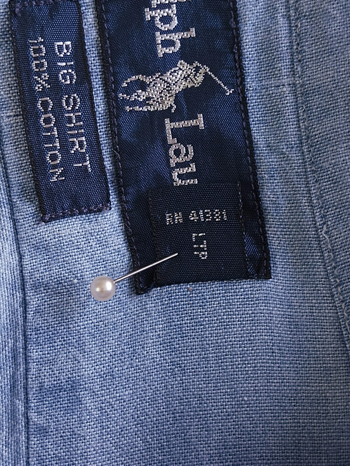 Awesome vintage 90's Ralph Lauren button-down chambray sky blue men's casual shirt long sleeves with buttons front classic fitted authenticity guaranteed. The shirt has button-down collar, single chest pocket with embroidered pony logo on left. 7 buttons closure on front. The color is sky blue with solid pattern. Fabric is 100% cotton chambray. The shirt is pre-owned still in excellent condition, there are no holes, tears, stains. It has been laundered clean and fresh ready to wear. Don't miss out cool and awesome shirt.