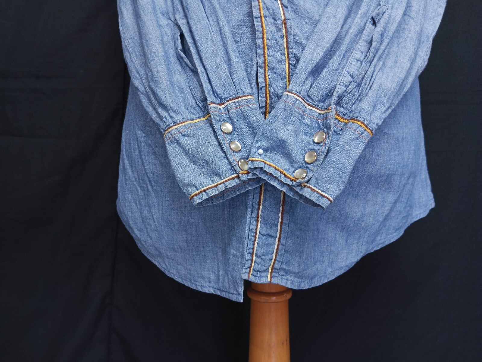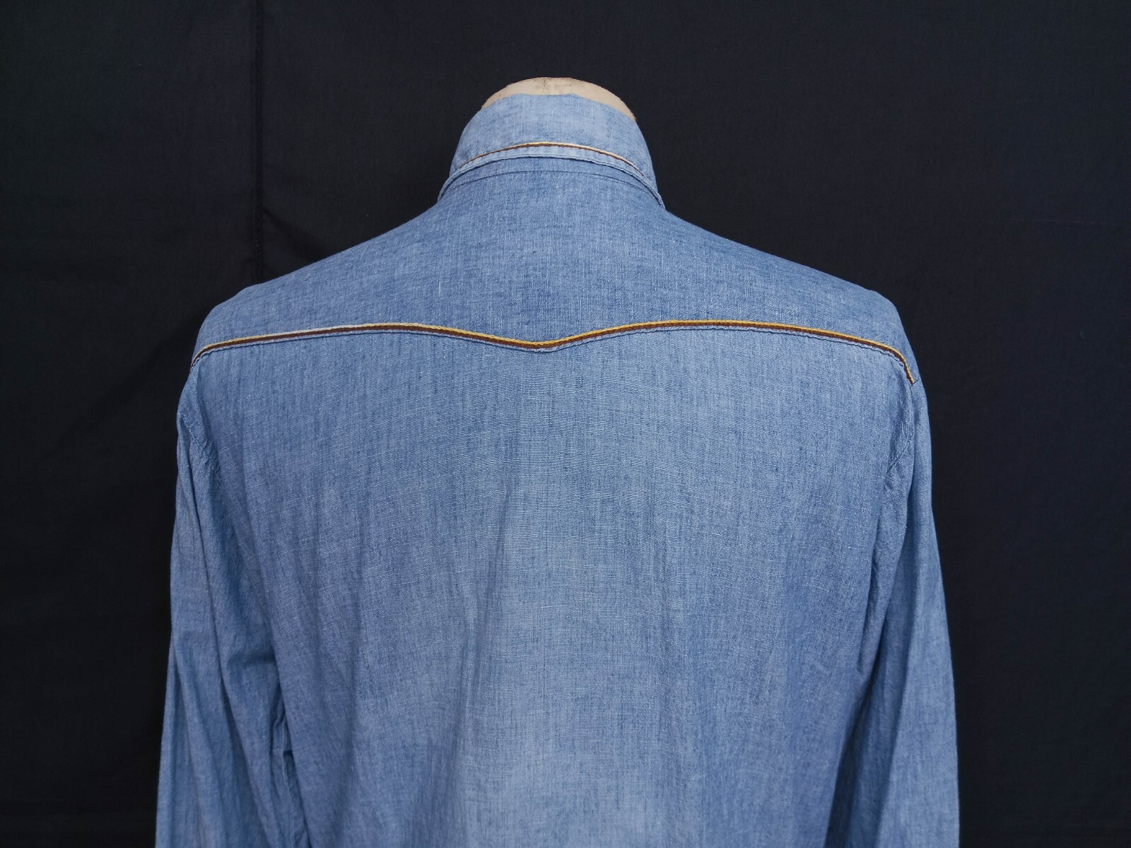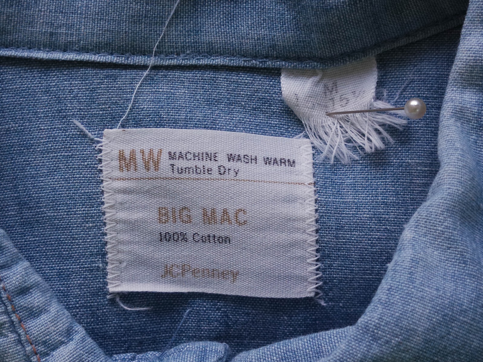 Awesome vintage 70's BIG MAC by JCPenny chambray men's work shirt authenticity guaranteed. Check out awesome vintage shirt long sleeves with pearl snap. The shirt has point collar, double flap chest button pockets with 6 pearl snap buttons closure on front. The color is sky blue with solid pattern. Fabric is 100% cotton chambray, selvedge fabric. The shirt is pre-owned still in good vintage condition no holes, tears, stains. It has been laundered clean and fresh ready to wear. Don't miss out cool and awesome vintage shirt.
