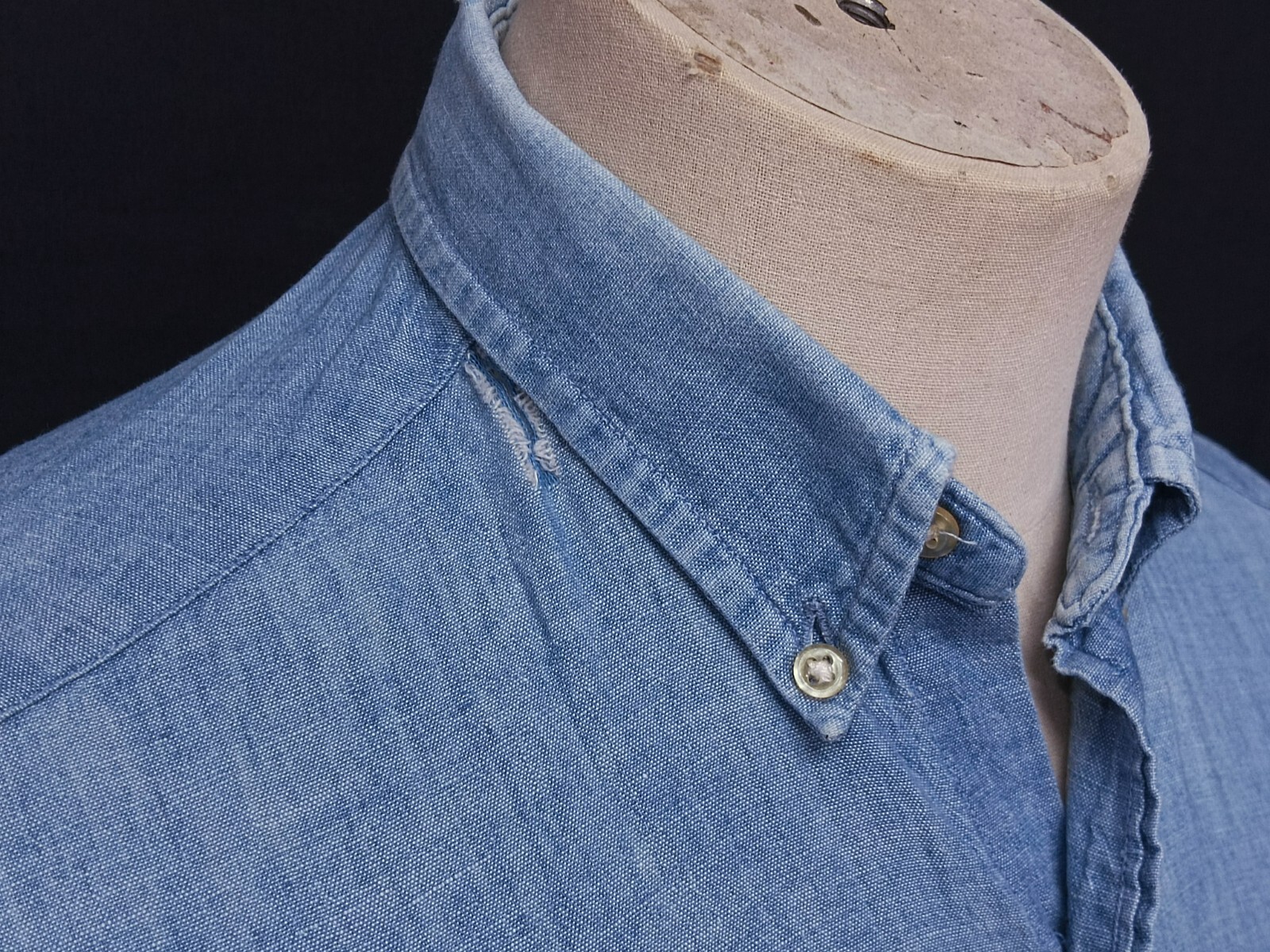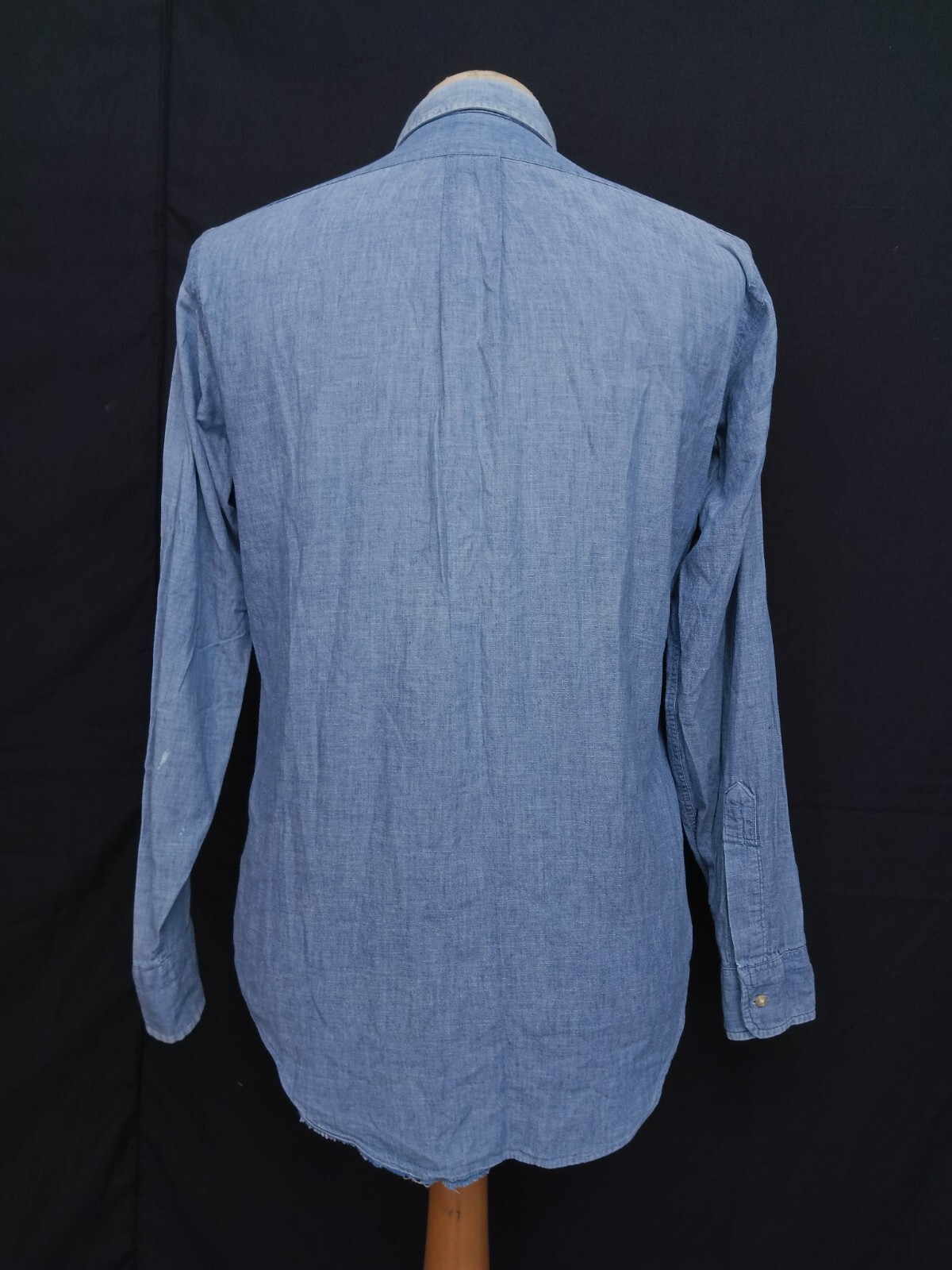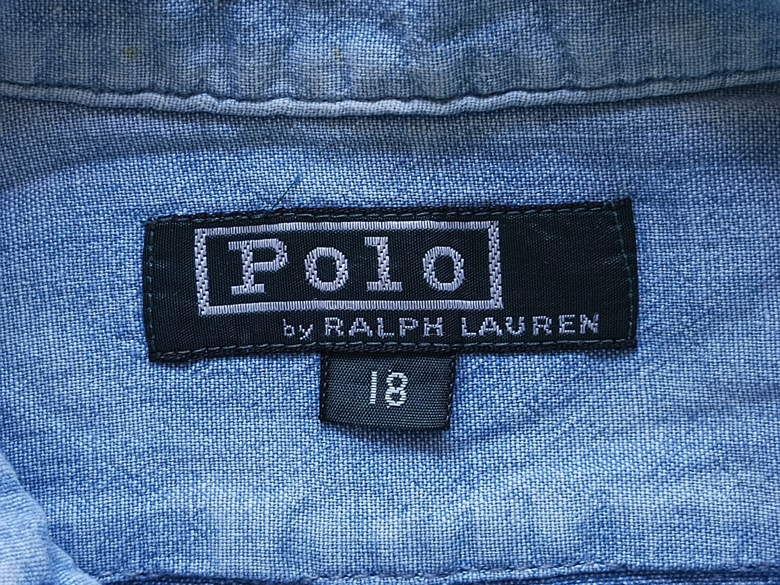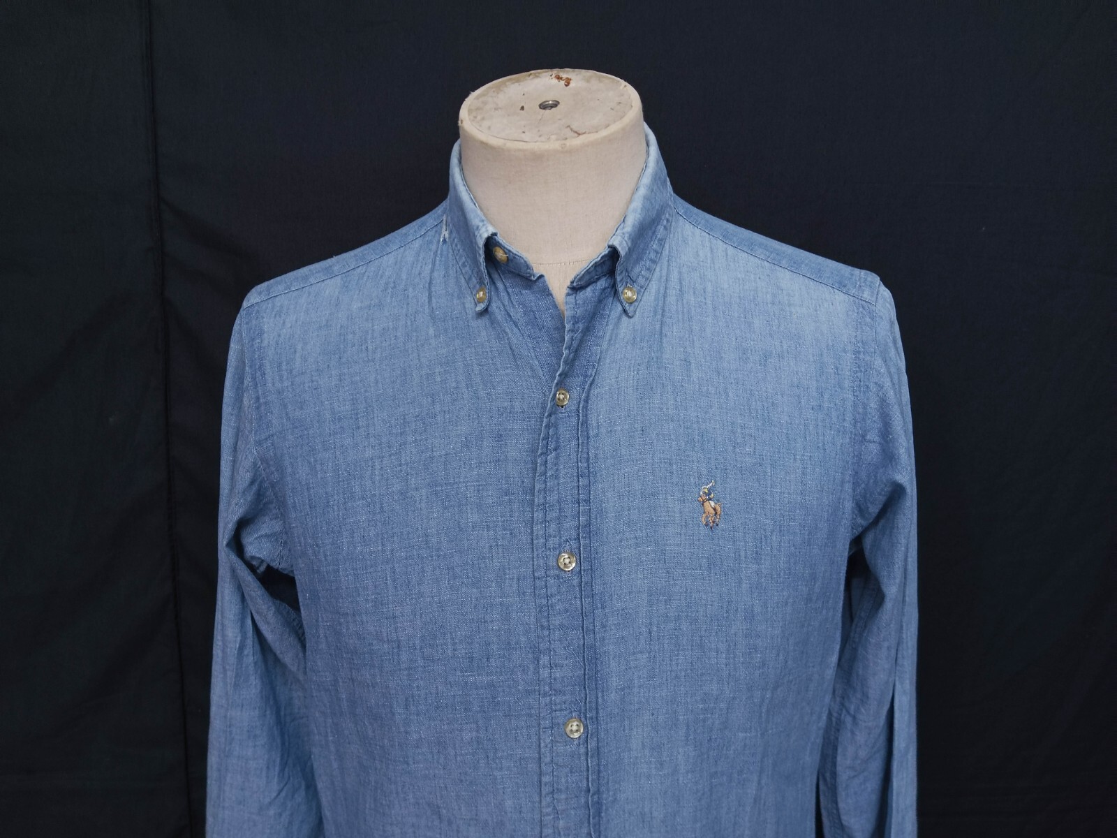 Awesome vintage 90's Polo Ralph Lauren button-down chambray sky blue teen's casual shirt long sleeves with buttons front authenticity guaranteed. The shirt has button-down collar, embroidered with pony logo on left chest. 6 buttons closure on front. The color is sky blue with solid pattern. Fabric is 100% cotton chambray. The shirt is pre-owned still in good vintage condition, there are holes under collar of the shirt. Please see the photos. It has been laundered clean and fresh ready to wear. Don't miss out cool and awesome shirt.