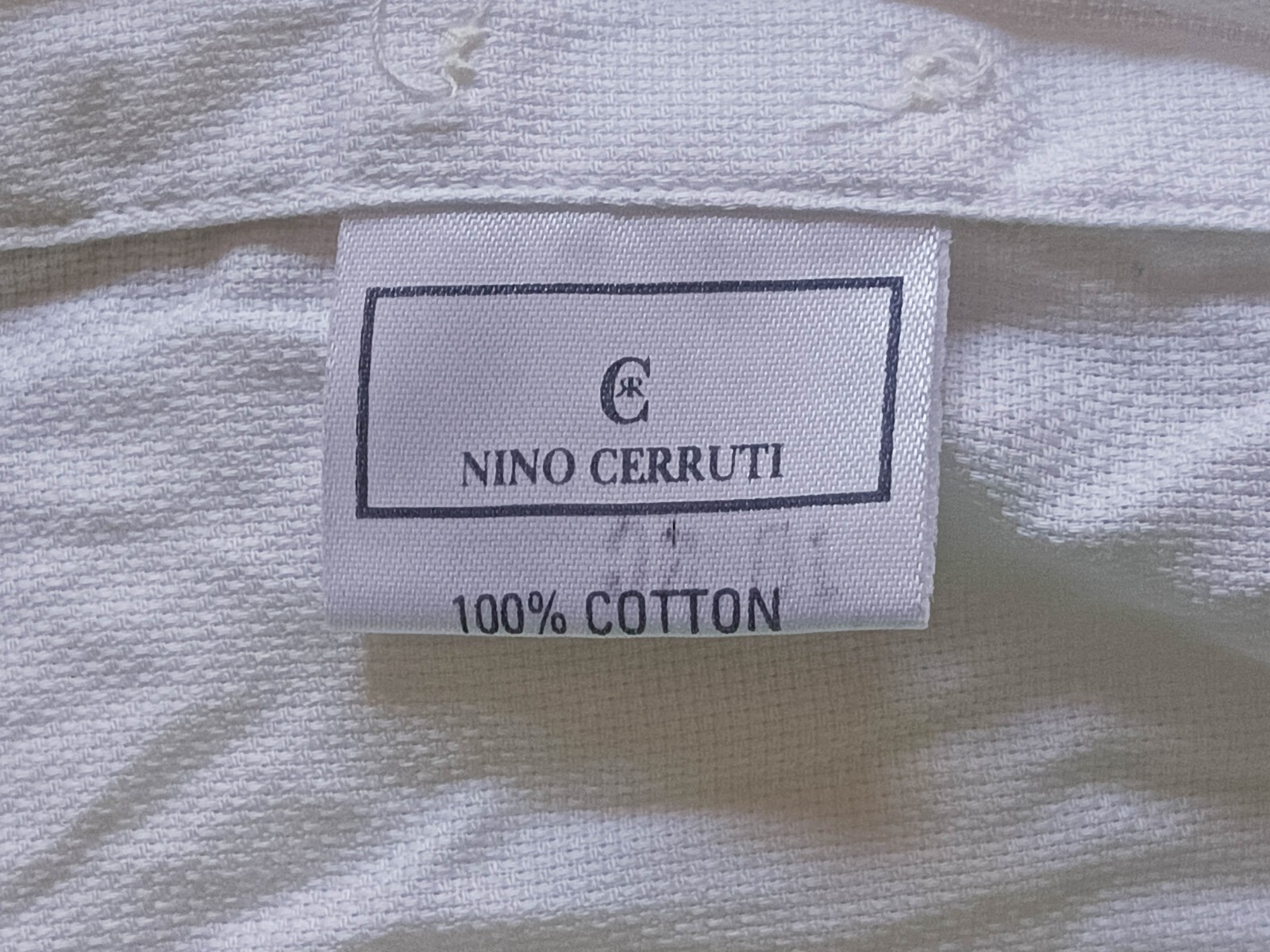 Awesome Nino Cerruti solid white men's casual shirt long sleeves with buttons front authenticity guaranteed. The shirt has button-down collar, single chest pocket with embroidered logo on left, 7 button closure on front. The color is white with solid pattern. Fabric is 100% cotton. The shirt is pre-owned still in excellent condition, no holes, tears, stains. It has been laundered clean and fresh ready to wear. Don't miss out cool and awesome shirt.