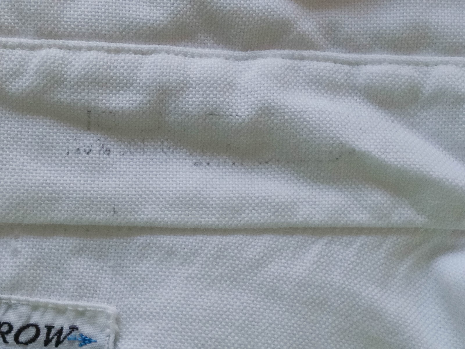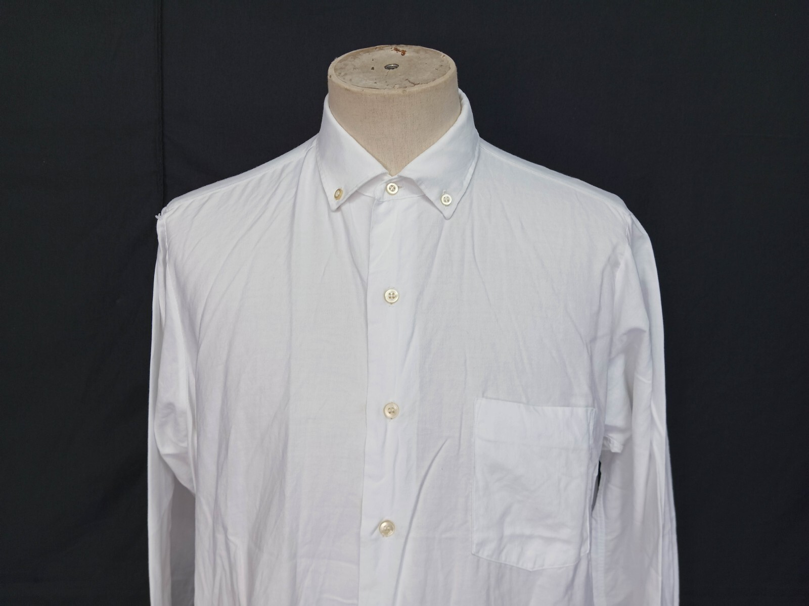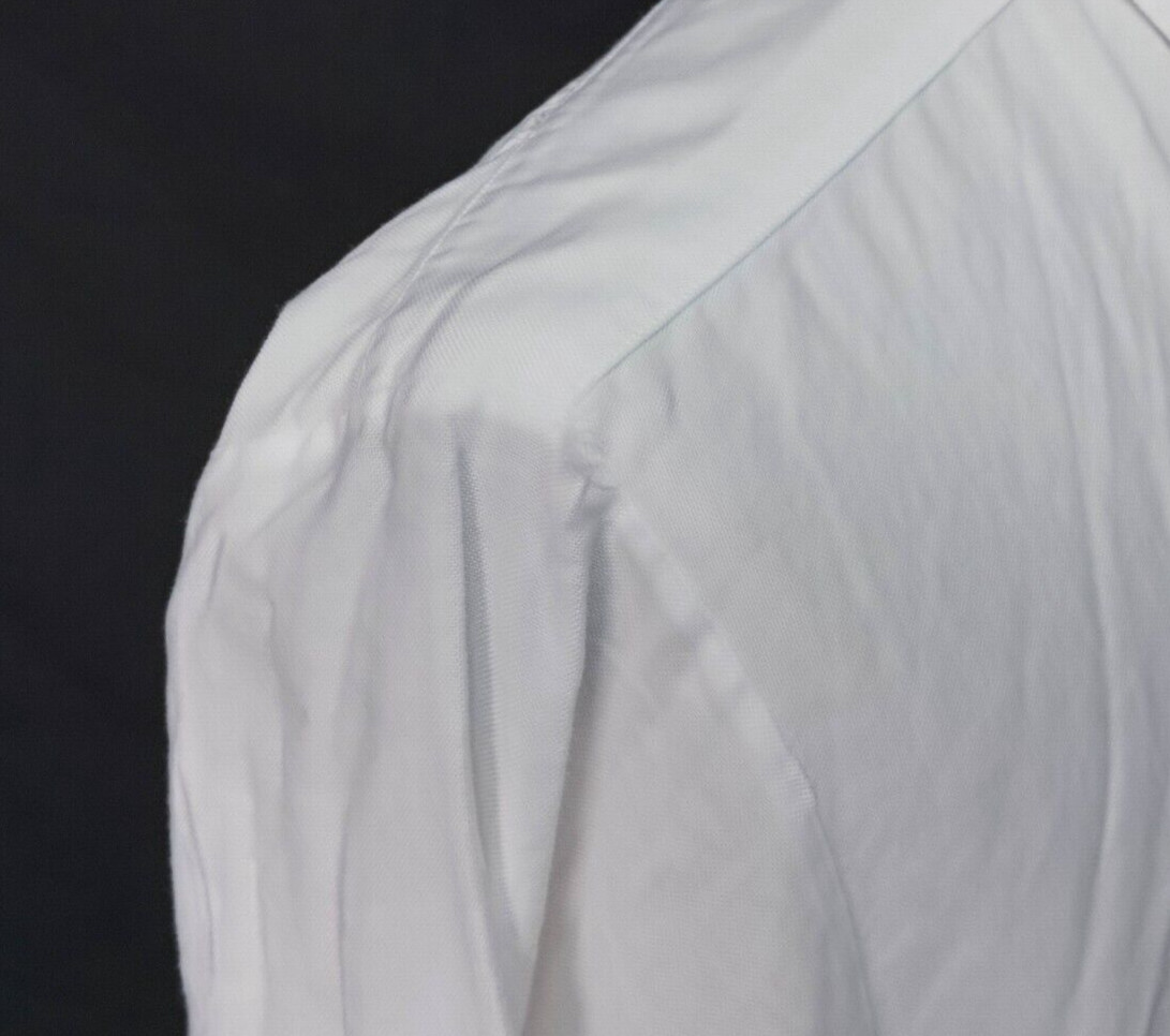 Awesome vintage Arrow Sanforized made in U.S.A. solid white men's dress shirt long sleeves with buttons front authenticity guaranteed. The shirt has button-down collar, single chest pocket on left with 7 buttons closure on front. The color is white with solid pattern. Fabric is 100% cotton oxford. The shirt is pre-owned still in defect condition, there are stains on buttonhole and back of the shirt, hole on right shoulder. Please see the photos. It has been laundered clean and fresh ready to wear. Don't miss out cool and awesome shirt.