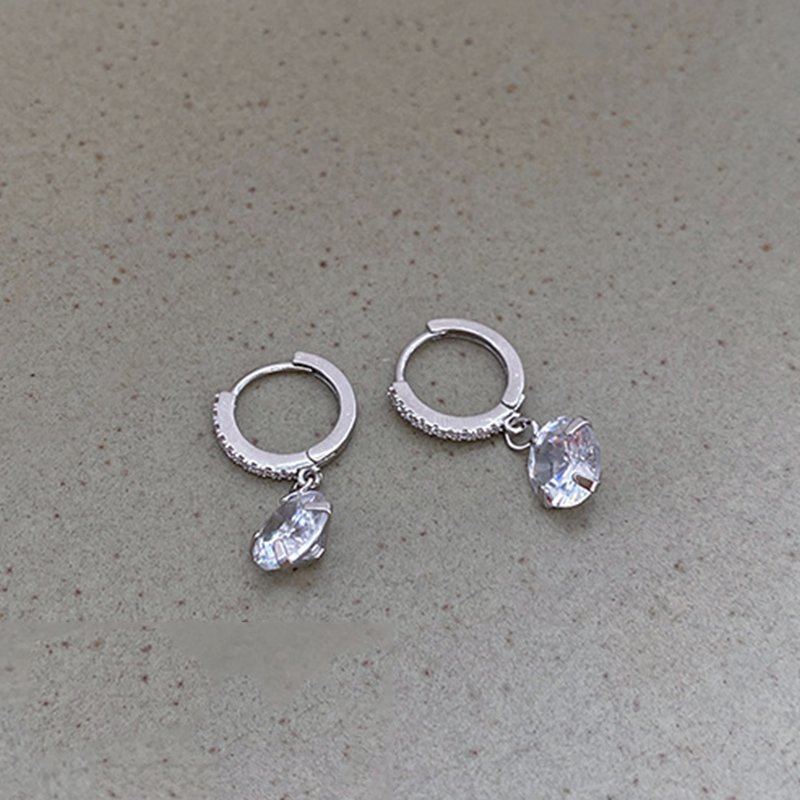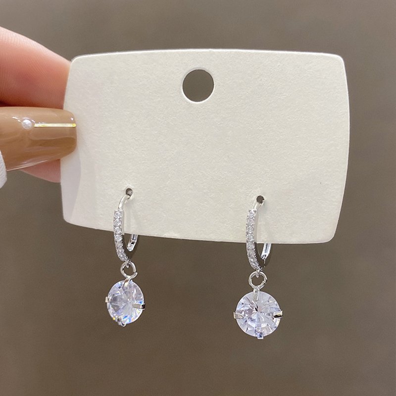 Women 925 Silver Round Cubic Zirconia Drop Dangle Earrings Hoop Wedding Jewelry