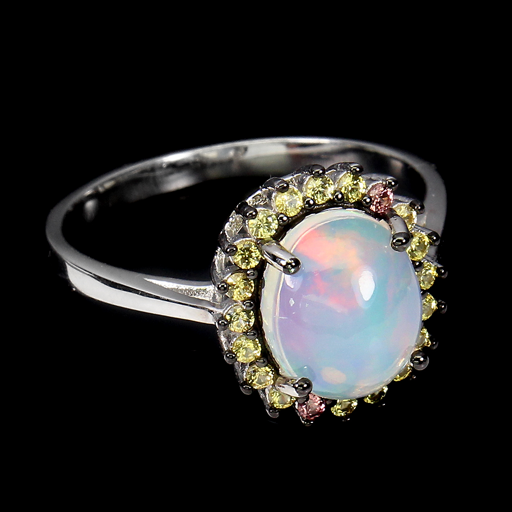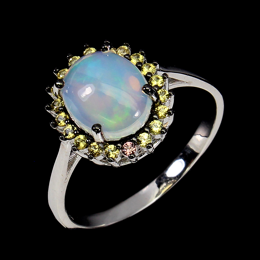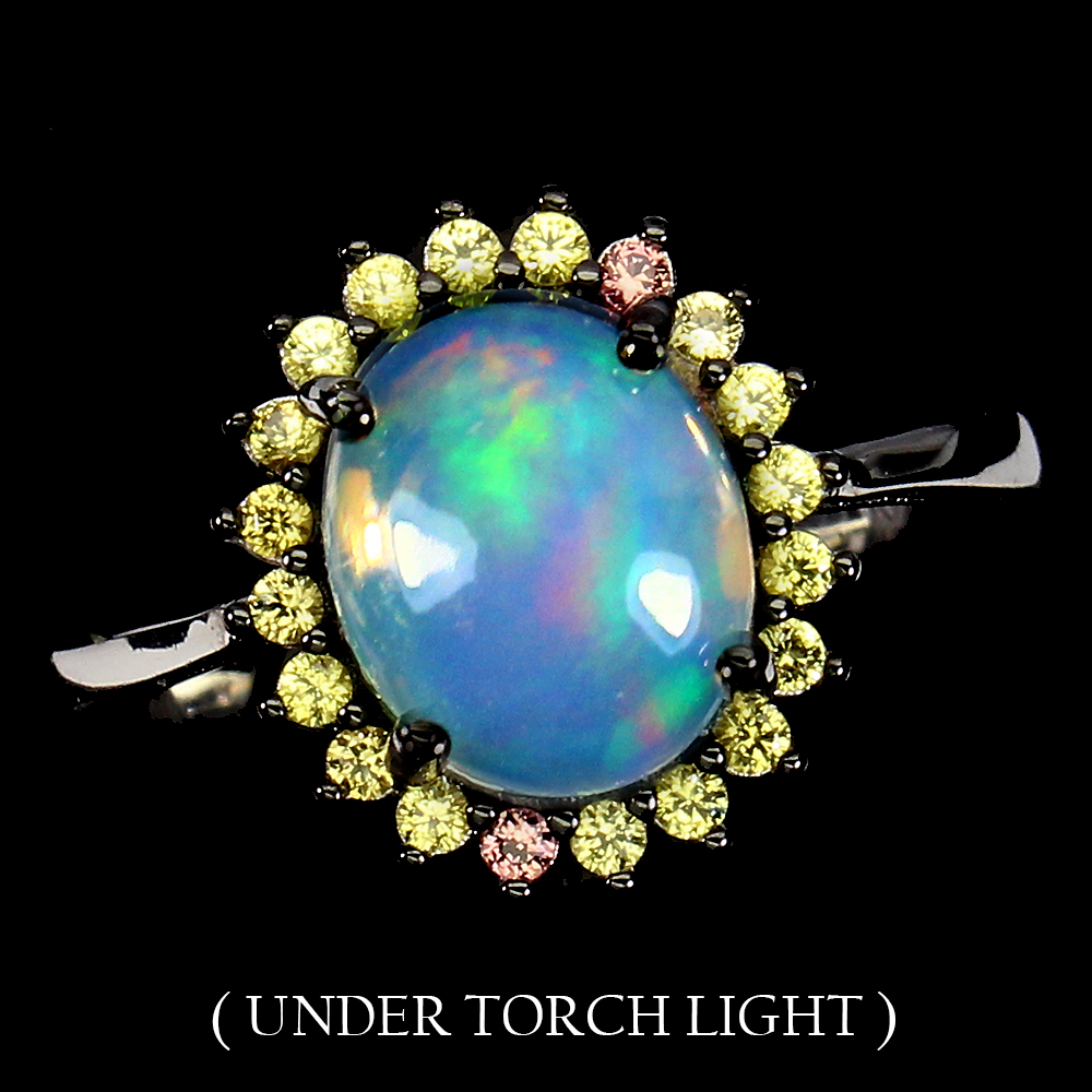 Unheated Oval Fire Opal Rainbow 10x8mm Sapphire 925 Sterling Silver Ring Size 7
