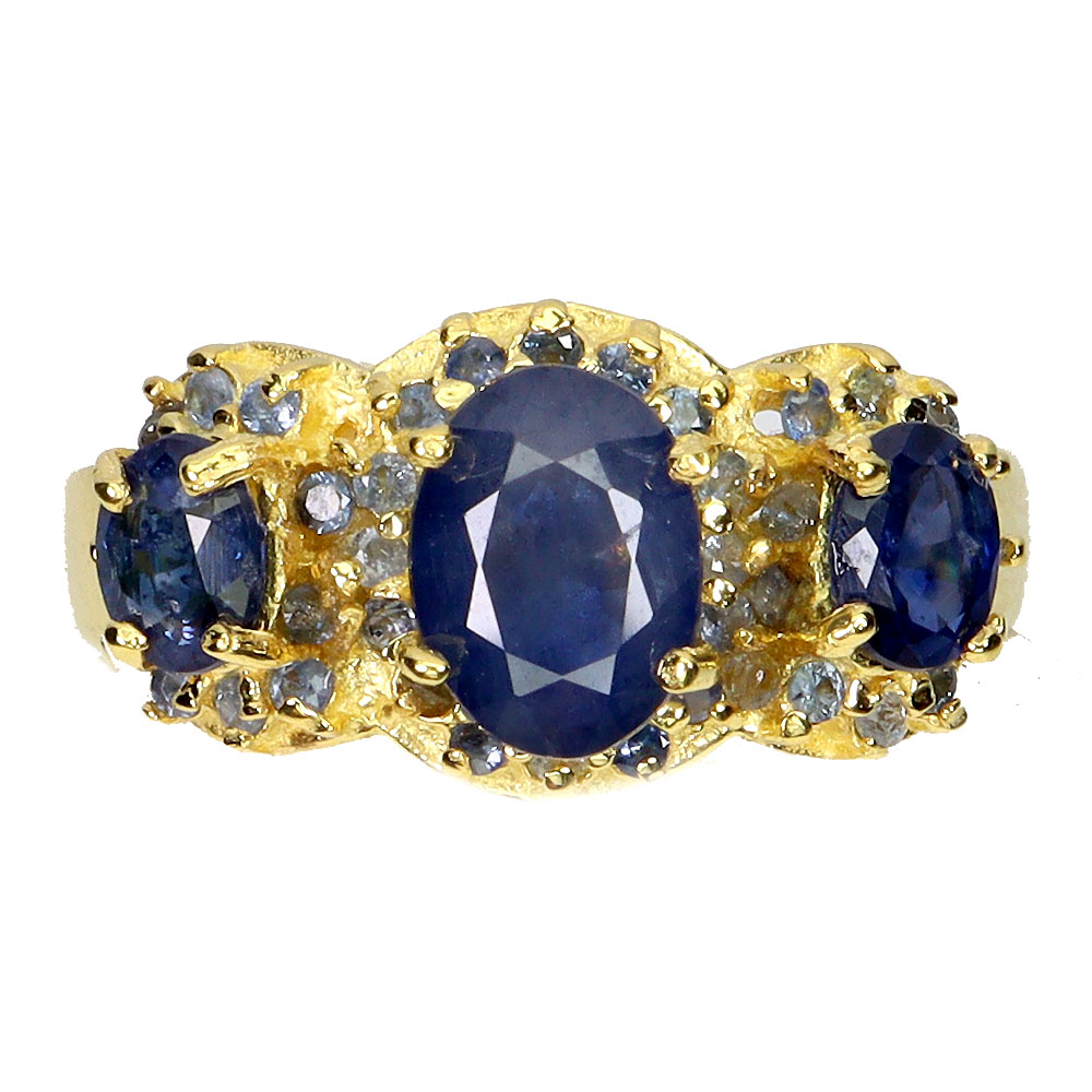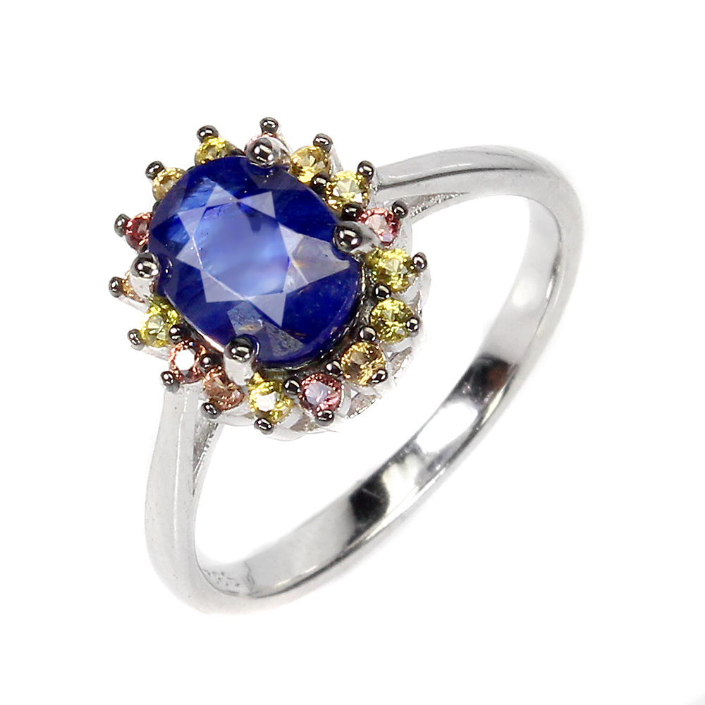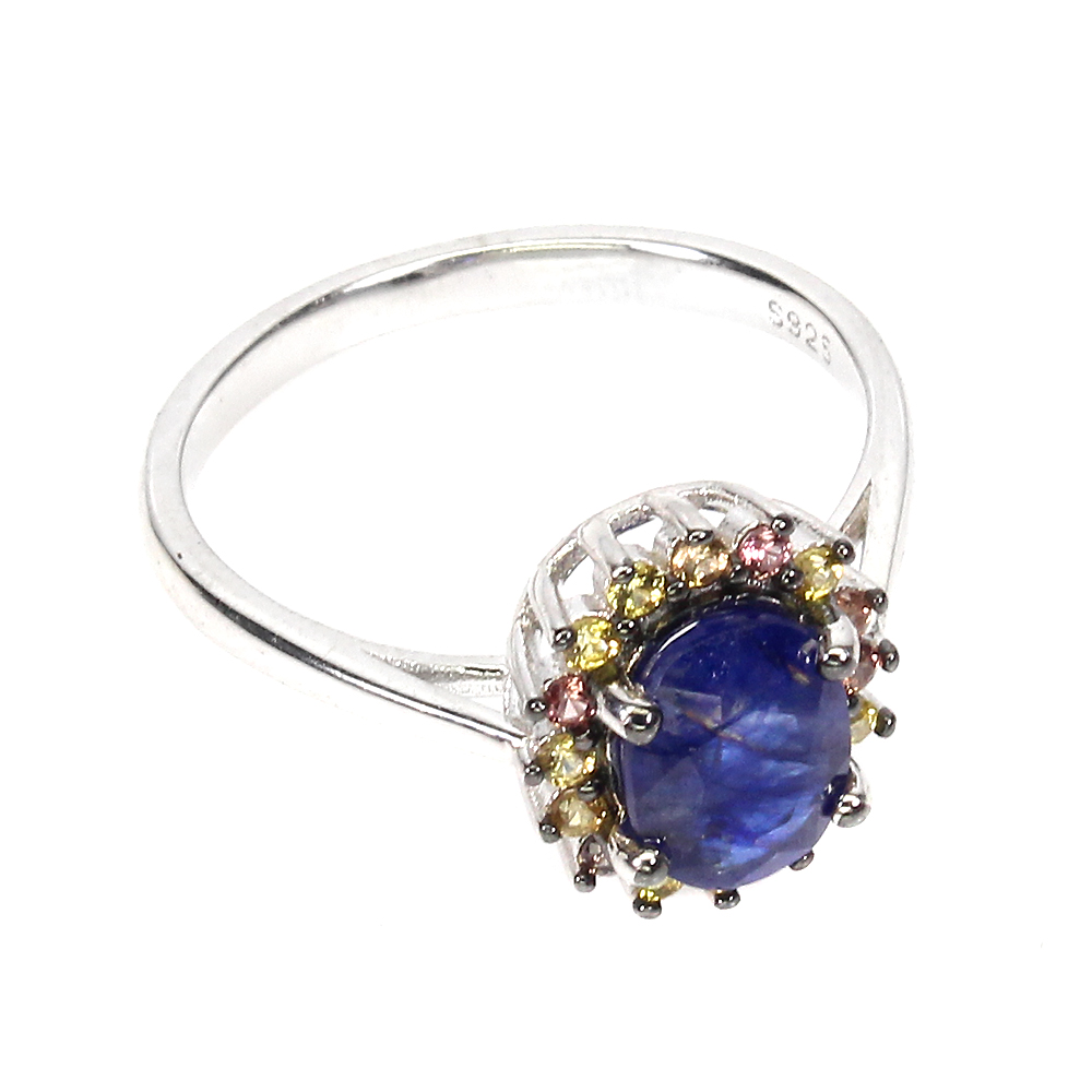 Heated Oval Blue Sapphire 8x6mm Sapphire Diamond Cut 925 Sterling Silver Ring 7
