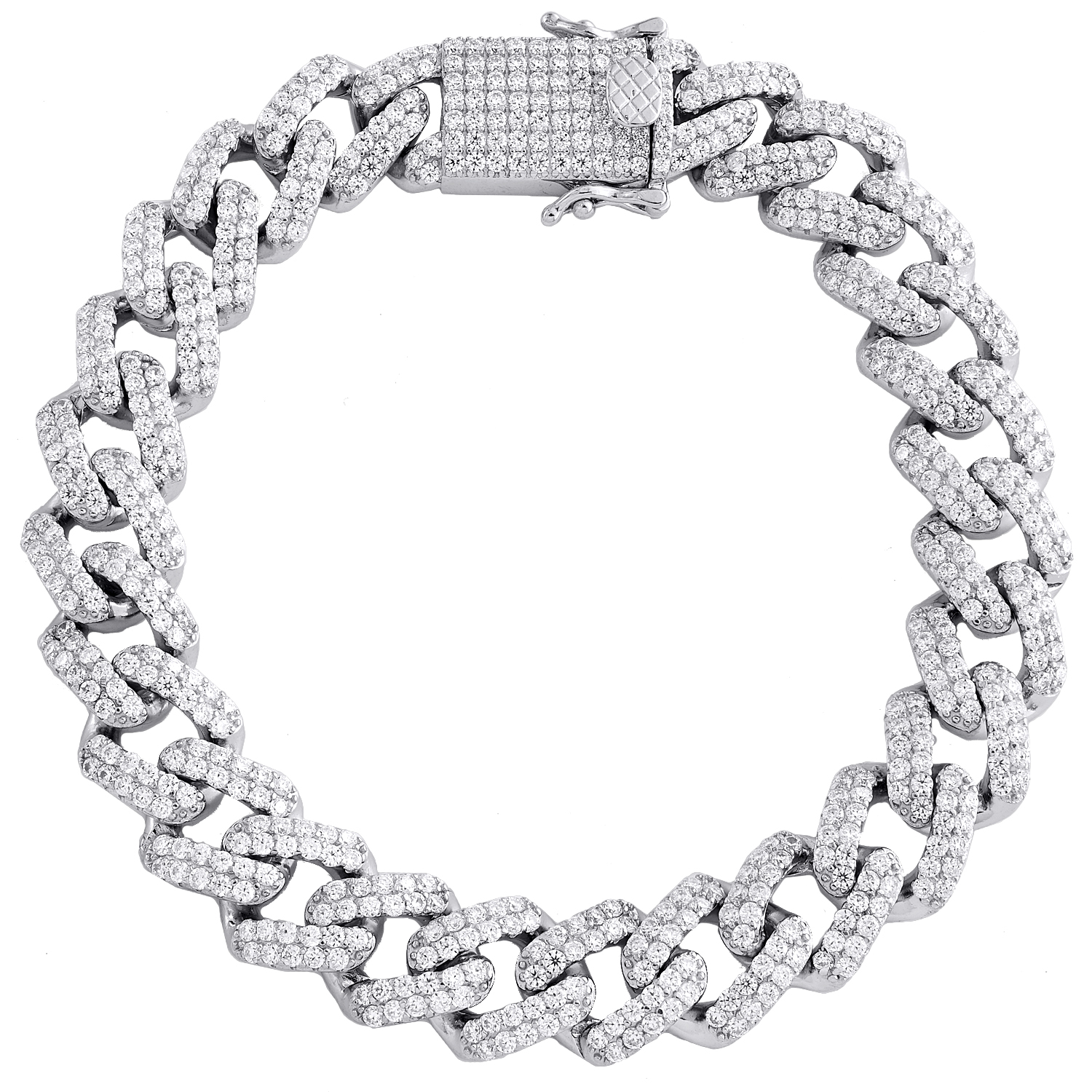 (48.1 gr. of 925 Sterling Silver | Total Carat Weight: 7.17 ct. t.w. of White Moissanite | Length: 8.50" | Width: 12mm | Clarity: VVS | Color: D | Men's Genuine Round Moissanite Miami Cuban Link Statement Prong Set Bracelet)