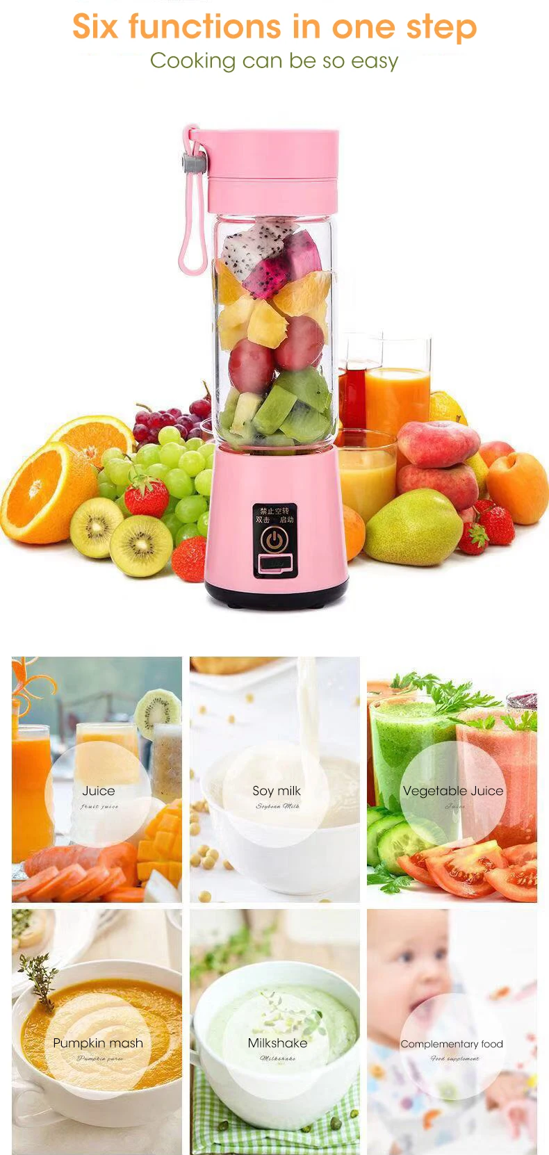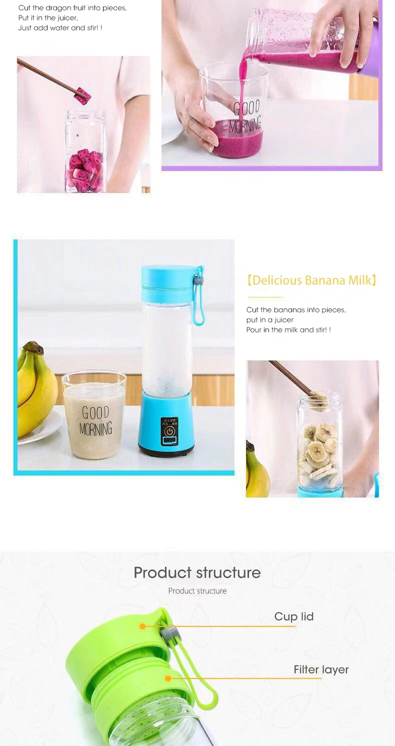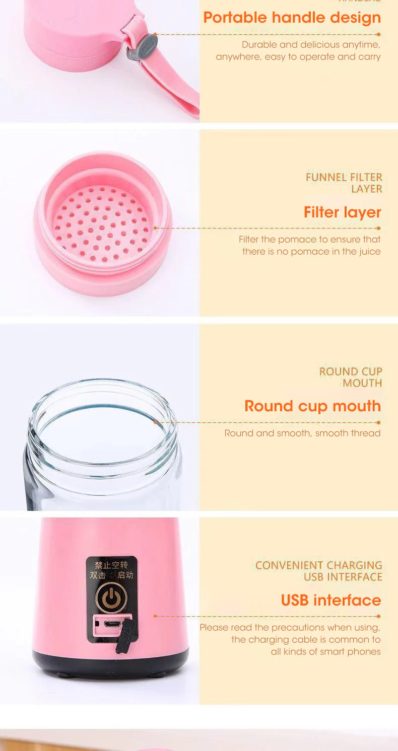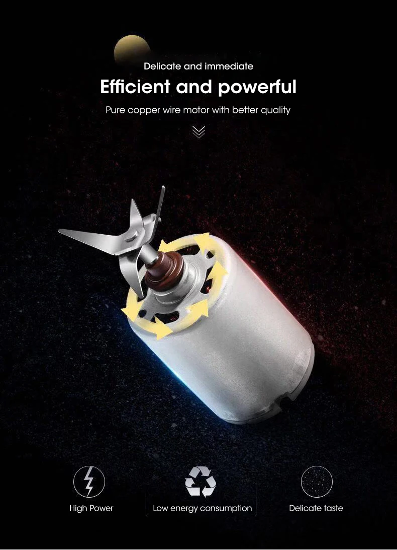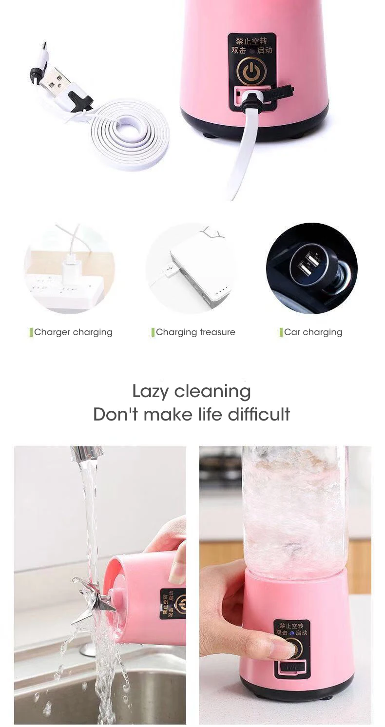 Rechargeable: This mini juicer cup is powered by usb port, no need to charge any other power supply. it can be used for a long time without battery.