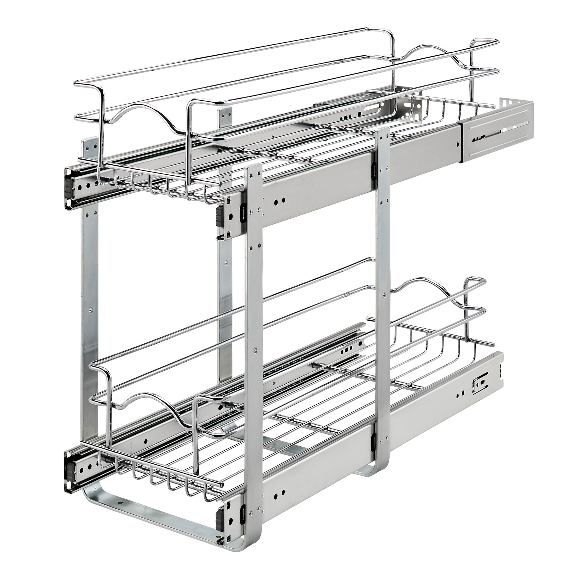 Upgrade and maximize the space in your kitchen cabinets with the redesigned Rev-A-Shelf 2-Tier Wire Pullout Baskets. Multiple sized width and depths are available, so you are sure to find the exact unit that fits your exact cabinet size.