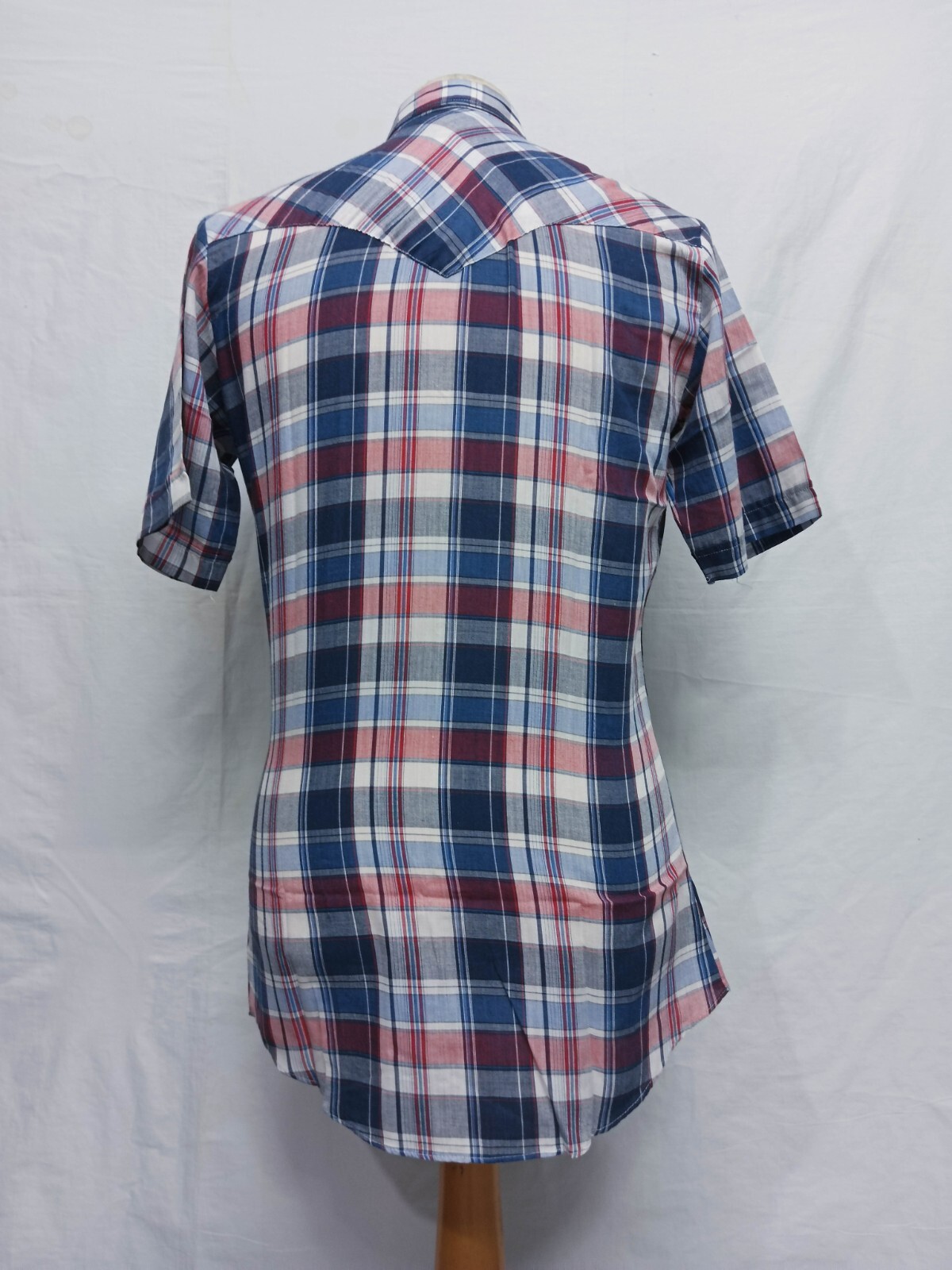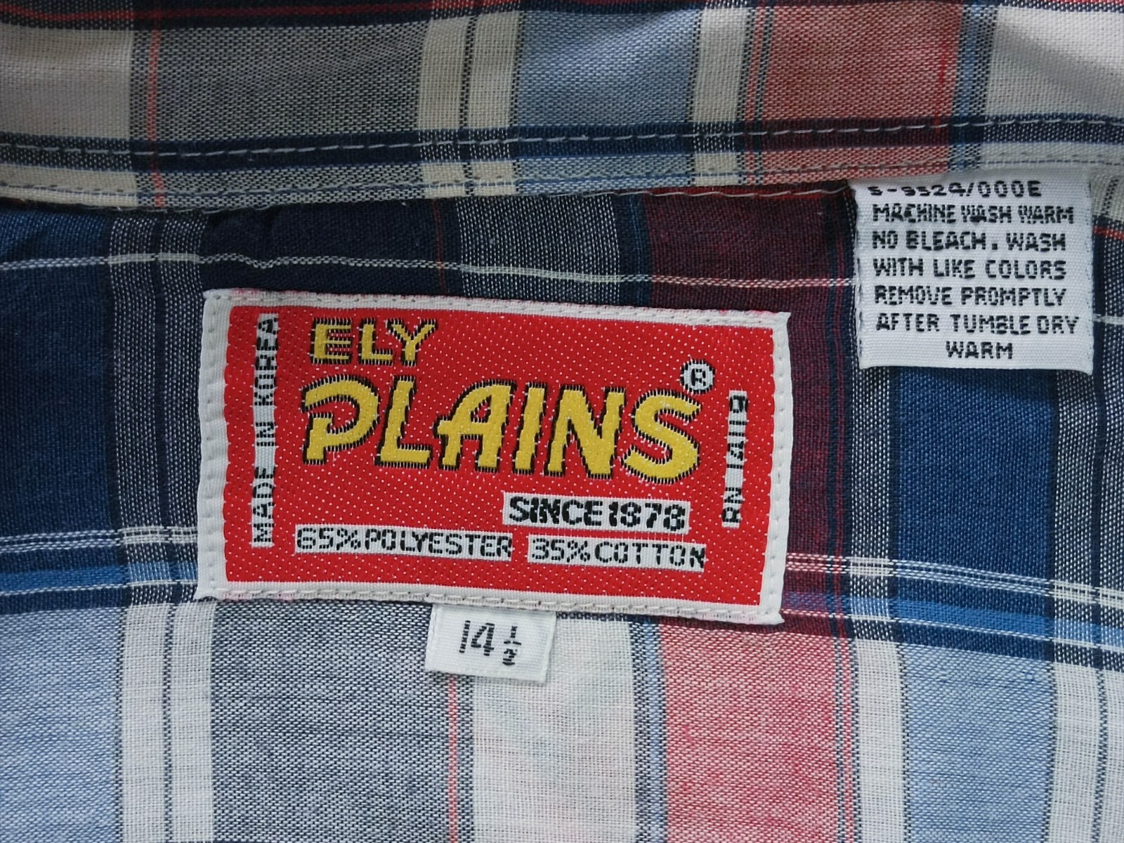 Awesome vintage Ely Plains pearl snap red blue white plaid men's western shirt slim fitted authenticity guaranteed. Check out perfect shirt short sleeves with snaps closure. The shirt has point collar, double flap chest snap pockets with 7 pearl snap buttons closure on front. The color is red, blue, white with plaid pattern. Fabric is 65% polyester, 35% cotton. The shirt is pre-owned still in excellent condition nearly as new no holes, rips, stains. It has already laundered clean and fresh ready to wear. Don't miss out cool and awesome vintage western shirt.