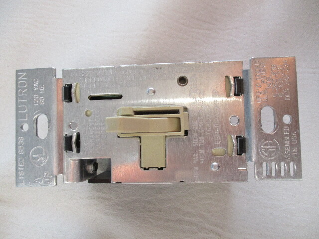 I am selling a Lutron toggler light switch w/ dimmer, part # 6B38. This item is used, not in original packaging and comes as shown. The toggler light switch with dimmer is almond in color, 600 watt max, single pole dimmer, 120 VAC, 60Hz and roughly measures 1 3/4" width x 4 1/8" high with (2) mounting holes 3 1/4" apart center to center. For more information regarding this item contact a dealer in your area. (LP / 29 B / 9100368) Shipping cost is for the continental United States only (lower 48 States). For shipping outside this area, please inquire about shipping costs before bidding.