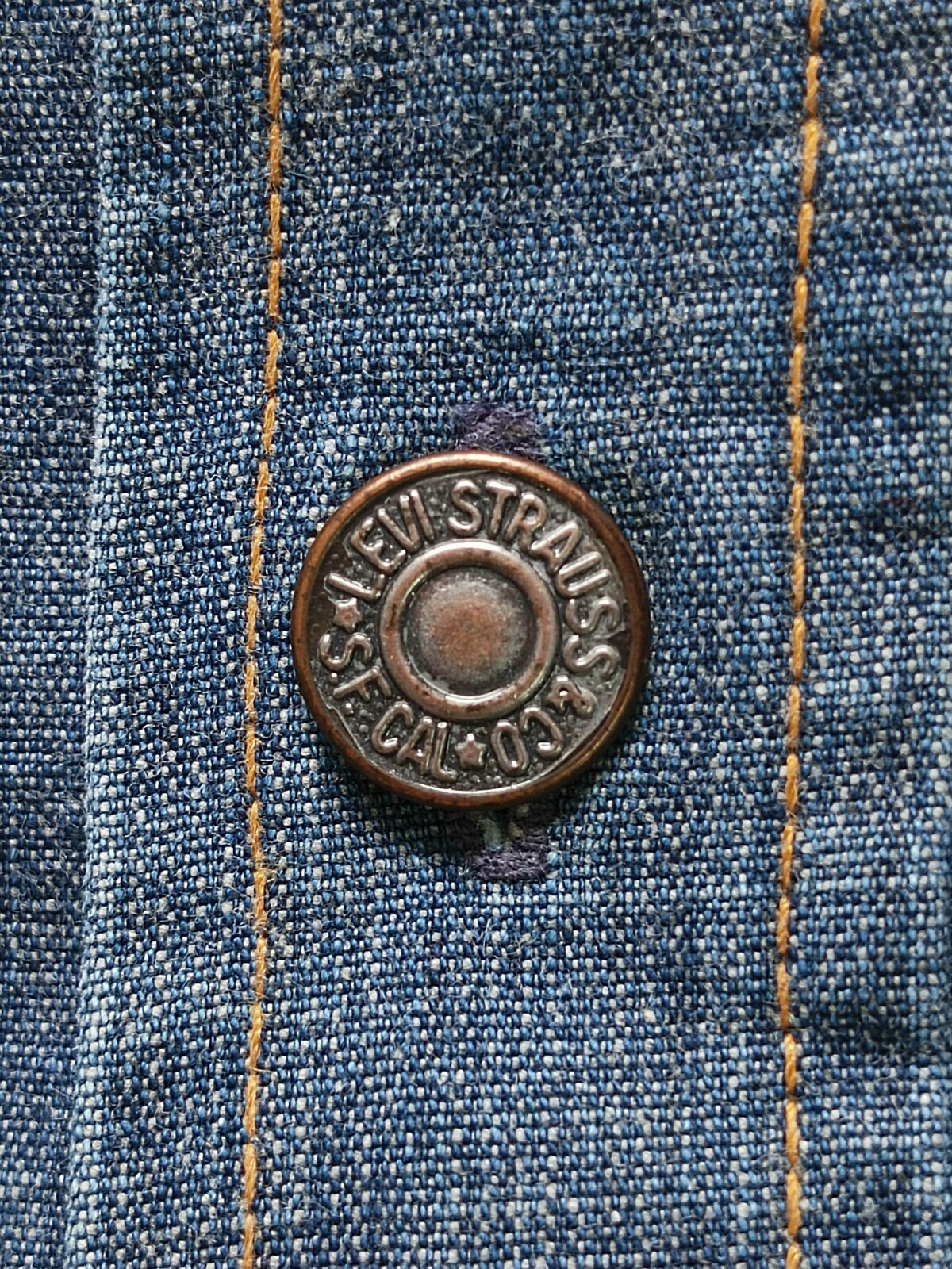 Rockabilly vintage 70's Levi's denim canvas men's work shirt long sleeves with metal buttons front authenticity guaranteed. The shirt has point collar, double flap chest pocket on front with 6 metal buttons closure on front. The color is indigo with solid pattern. Straight hem slit at side. Fabric is 100% cotton denim canvas. The shirt is pre-owned still in excellent vintage condition no holes, tears, stains. It has been laundered clean and fresh ready to wear. Don't miss out cool and awesome vintage western shirt.