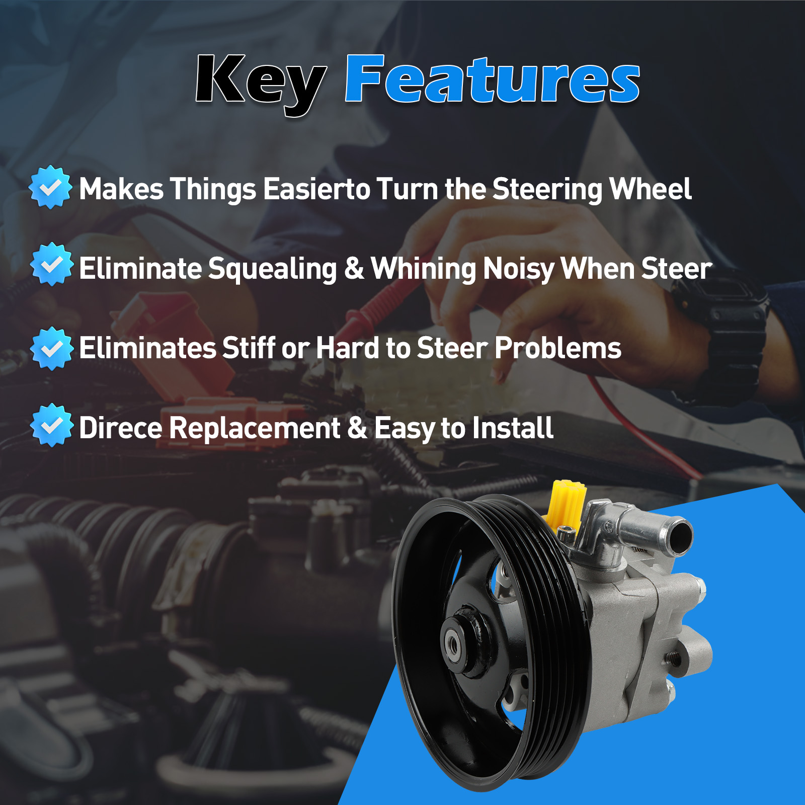 Welcome to the cmpafte_4 store. We are specialized in exporting auto parts and excavator construction machinery parts. Our products are uniquely endowed with very good quality, competitive price and good after-sales service. Please double check if it fits your car before purchase, if you are not sure you can contact us. If you encounter problems, please contact us first and we will help you solve it ①Product Specifications Size: 16x16x15.5(cm) Weight: 2kg Material: Aluminum Color: Silver Placement on Vehicle: Front Hose Port Type: O-Ring Housing Material: Iron Power Steering Outlet Thread Size: M16*1.5 Power Steering Outlet ID Size: Power Steering Pump Inlet Attachement Type: Hose Barb Power Steering Pump Outlet Attachment Type: Threaded Pulley Attachement Type: Press-on Pulley Included: Yes Reservoir Included: No ②OEM/Interchange Part Numbers 21-5478,49110 ZX01B, 49110-JA02B, 49110CN00C, 49110-JA000 ③Fitment Nissan Altima 2007-2013 2.5L L4 Nissan Altima 2013 3.5L V6 Nissan X-Trail 2005-2006 2.5L L4 ④Features Built to strict quality control standards 100% factory tested IATF16949 100% Compatible with OEM Parts, meets Original Equipment Manufacturer (OEM) Standards This steering pump is made of high-quality material and maintains an excellent strength to give the parts long-term performance the reservoir into the steering gear and keeps the wheels running in the right conditions This steering system pump is a direct replacement. If your original power steering pump is failing or leaking, this replacement steering pump could be your solution. If you have symptoms like whining noise while turning the wheel, steering wheel slow to respond, stiff steering wheel, or squealing & groaning noises when the vehicle starts, and you might need to replace your old Power Steering Pump with this one. ⑤Package Include 1PC Power Steering Pump ⑥Attention Ⅰ 1. When disassembling the steering pump of the original car,drain the original old hydraulic oil at the same time. 2.Clean the oil can and the oil pipe, check whether the oilcan is damaged,check whether the filter of the oil can isblocked,check whether the oil inlet hose is hardened andaging, prohibit the oil with impurities, and prohibit the oil fromturning black and opaque Ⅱ 1.When installing the steering pump,you must lock the oilinlet pipe clamp and check whether it is firmly to prevent airintake. 2.Replace the sealing ring of the high pressure oil pipelinking the steering pump to prevent oil leakage, resulting inmisjudgment of oil leakage from the steering pump. Ⅲ note! Follow the process 1. Instali the steering pump 2. Fill the oil pot with oil, 3. After starting the engine, do not turn the steering wheelLet the steering pump circulate the oil by itself. Observe theoil in the tank and replenish the oil in time until the properlevel is reached.After the installation is complete, turn thesteering wheel at last. ⑦Note before installation, be sure to clean the oil pot and oil pipe. lfthere are impurities, after the car is running, the impurities inthe oil pot and oil pipe will enter the steering pump, resultingin the pump not working. Once the pump does not work. please contact us in time and we will send a video of cleaningthe pump. Then follow the steps in the video to clean thepump, the pump will be Ok.