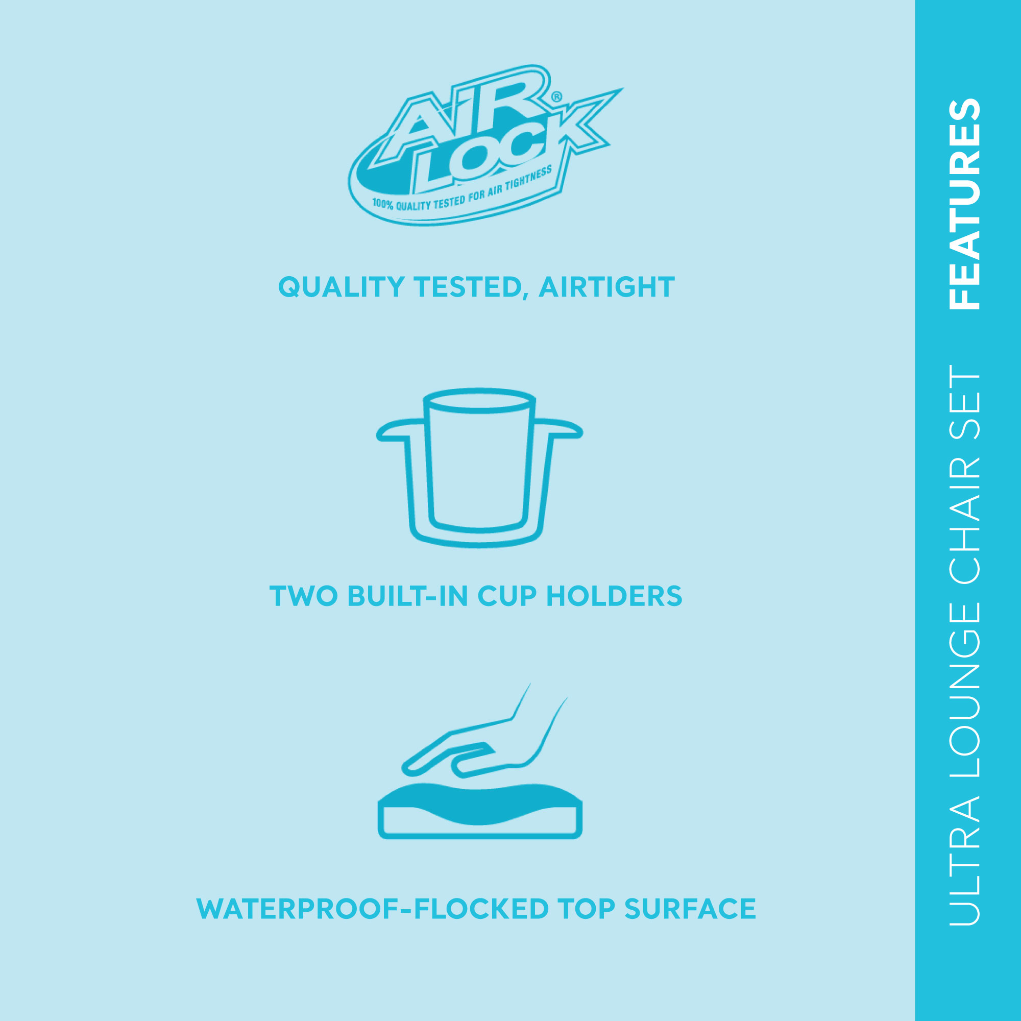 This set inflates and deflates quickly and features a comfortable flocked surface material, leisurely backrest, and an ottoman. Don't worry, a built in cup holder is there for you when you need an ice cold beverage after a long day. It is waterproof and comprised of sturdy PVC vinyl for a long life of peaceful relaxation. It can hold up to 220 pounds.