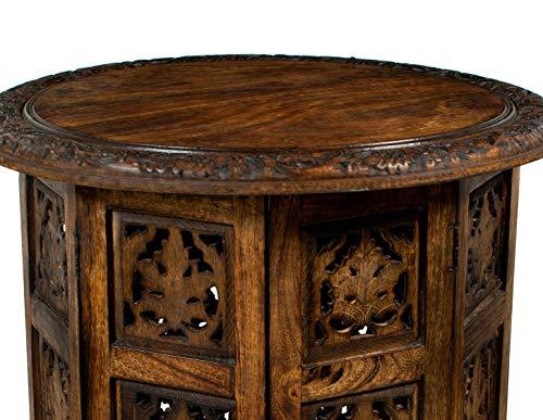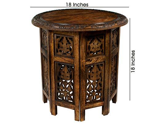 Our Antique design Folding Accent Coffee Table is hand carved from 100% sustainably harvested Mango wood. This attractive accent table will compliment an assortment of décors. Ideal construction to hold up to 50 pound with collapsible folding panels for easy storing. Wipe clean with dry cloth for easy care. MINOR ASSEMBLY REQUIRED