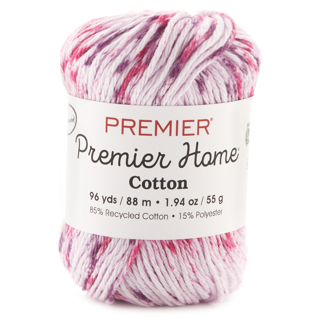 PREMIER YARN-Home Cotton Yarn-Multi. This medium weight cotton blended with polyester means colors stay brighter longer, finished projects dry faster and projects are more durable to last longer! Perfect for mesh wash cloths and more! Weight Category: 4. Content: 85% cotton, 15% polyester. Putup: 2.1oz/60g, 105yd/96m. Gauge: 18stx24r = 4in/10cm on size US8/5mm knitting needles. Suggested crochet hook size US1-9/5.5mm. Dyelotted: we try but are not always able to match dyelots. Care: machine wash, dryer safe, do not bleach, do not iron, do not dry clean. Comes in a variety of colors. Imported.
