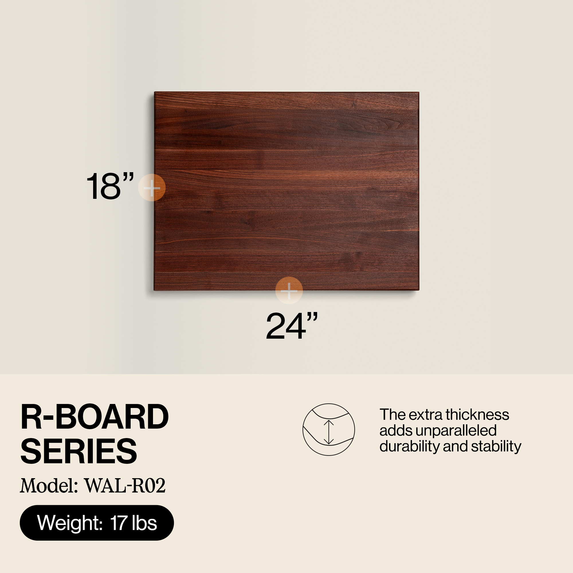 Made in our home and crafted for yours, the John Boos R-Board series wooden cutting board is designed for global culinary professionals and home chefs. Crafted from high-quality wood, this large cutting board boasts a substantial 1 1/2-inch thickness and is available in 3 sizes to suit various needs. Featuring edge-grain construction, it’s meticulously designed for durability and capable of withstanding rigorous chopping, cutting, and slicing with proper care and maintenance.