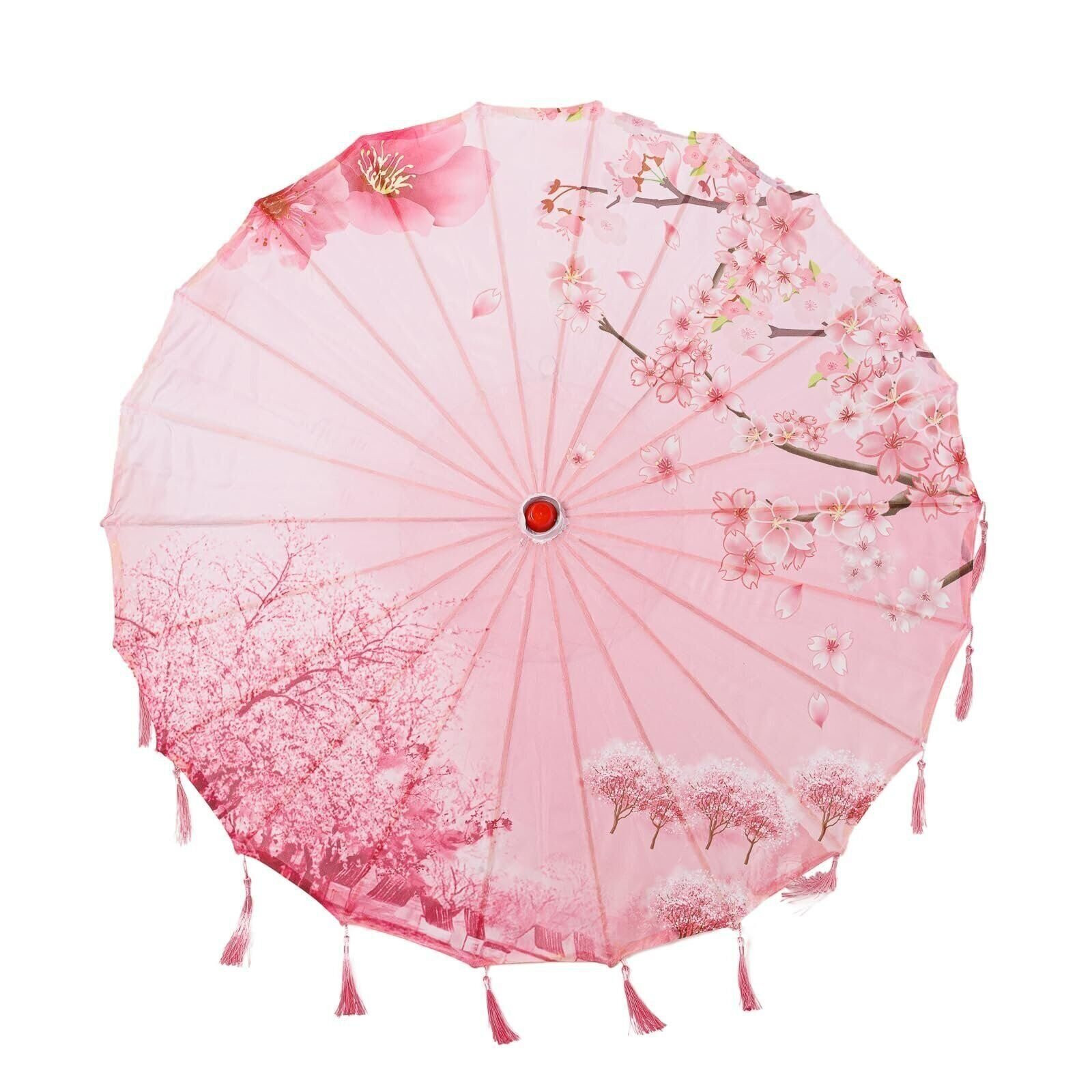 Chinese Art Asian 33" Silk Parasol Umbrella with Tassels for Wedding, Costume
