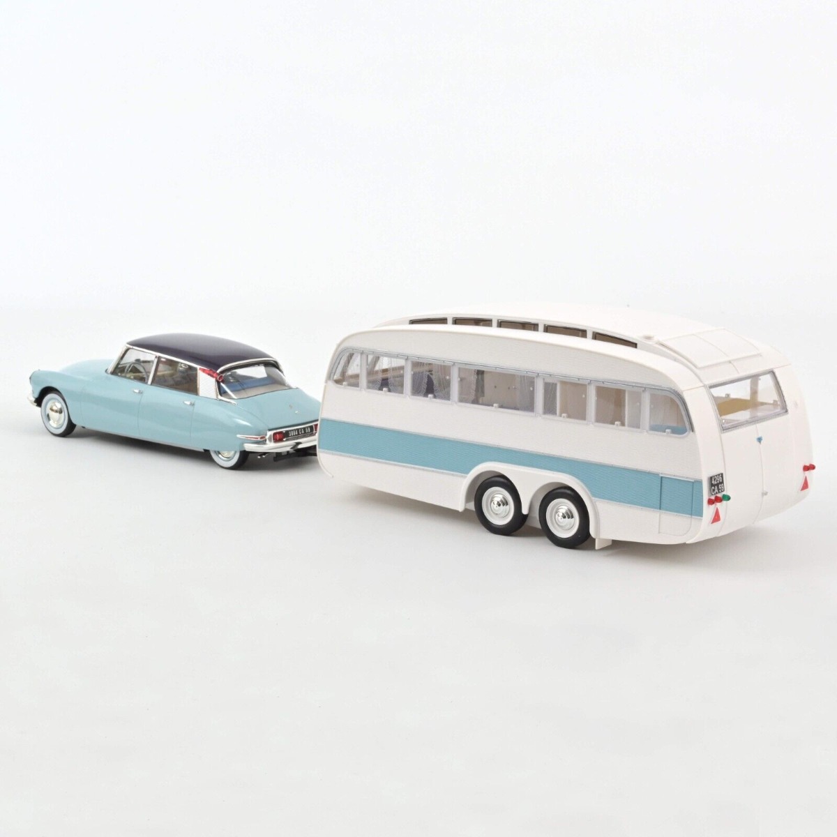 CITROEN DS19 de couleur bleue nuage et sa caravane HENON de 1959 à l'échelle 1/18