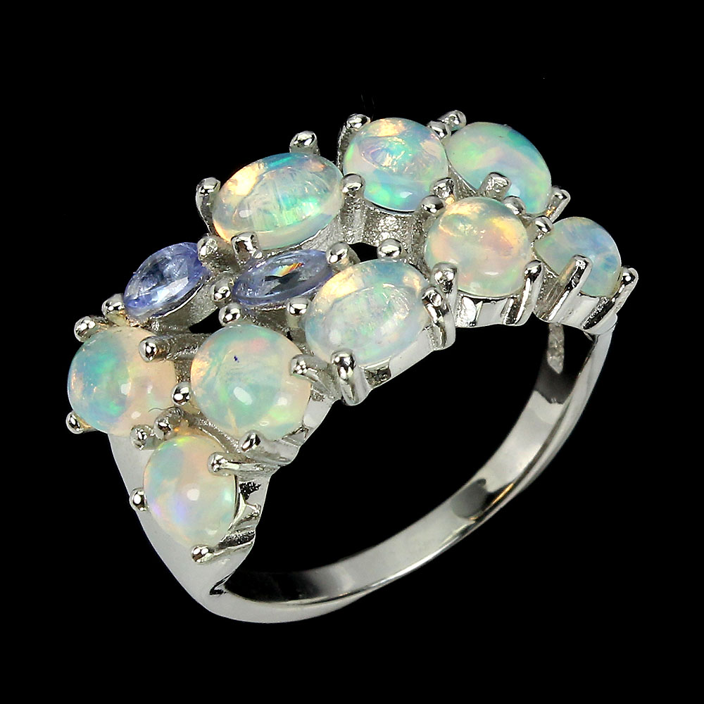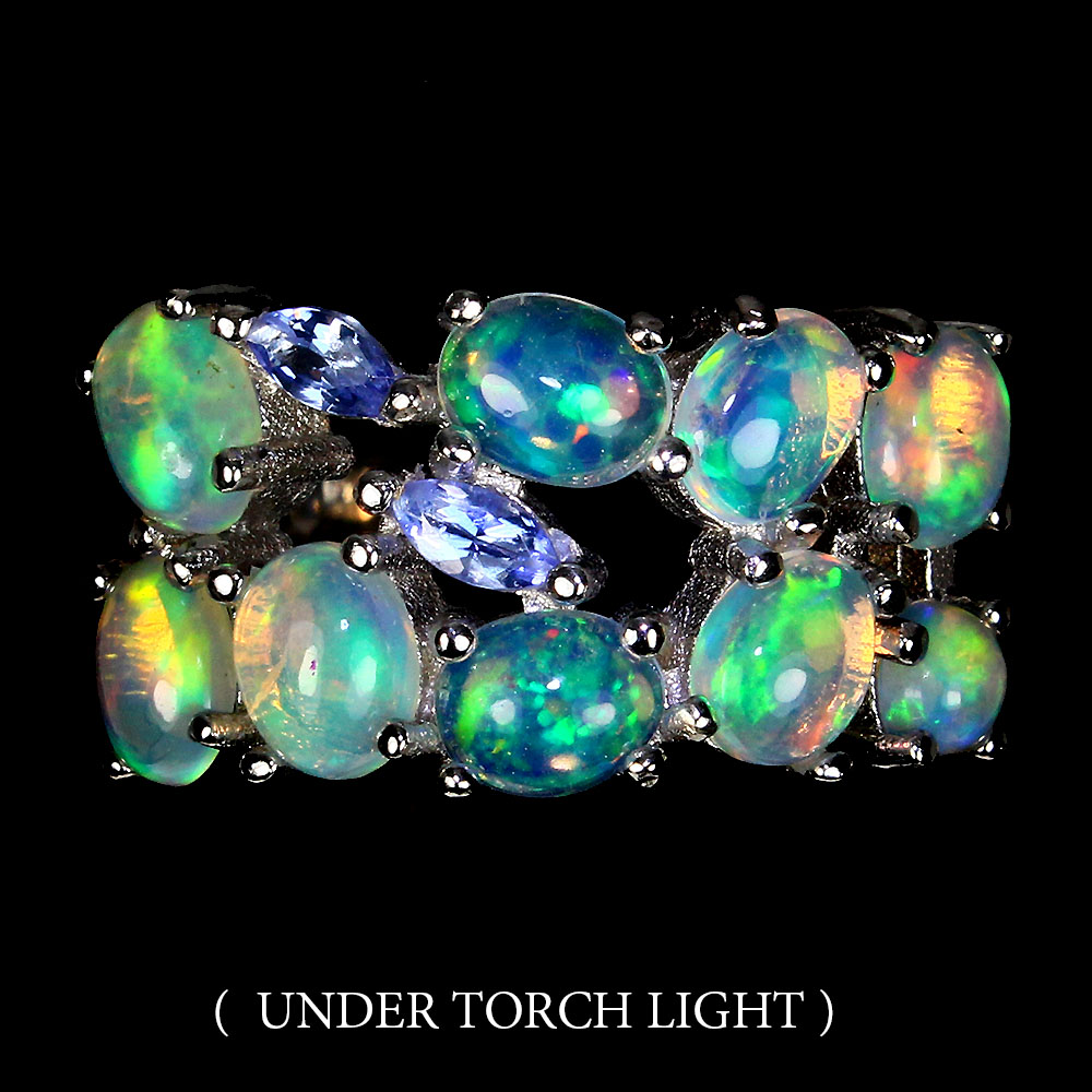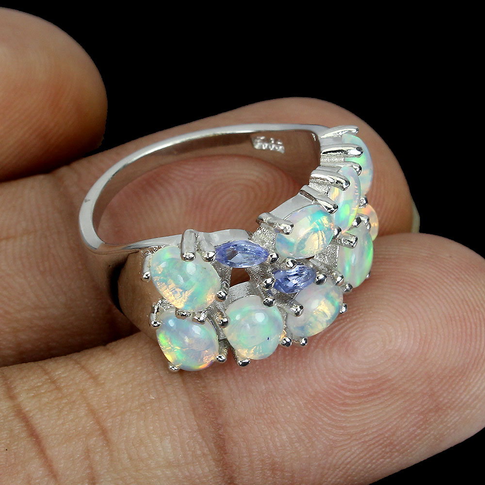 Unheated Oval Fire Opal Rainbow 5x4mm Tanzanite 925 Sterling Silver Ring Size 6