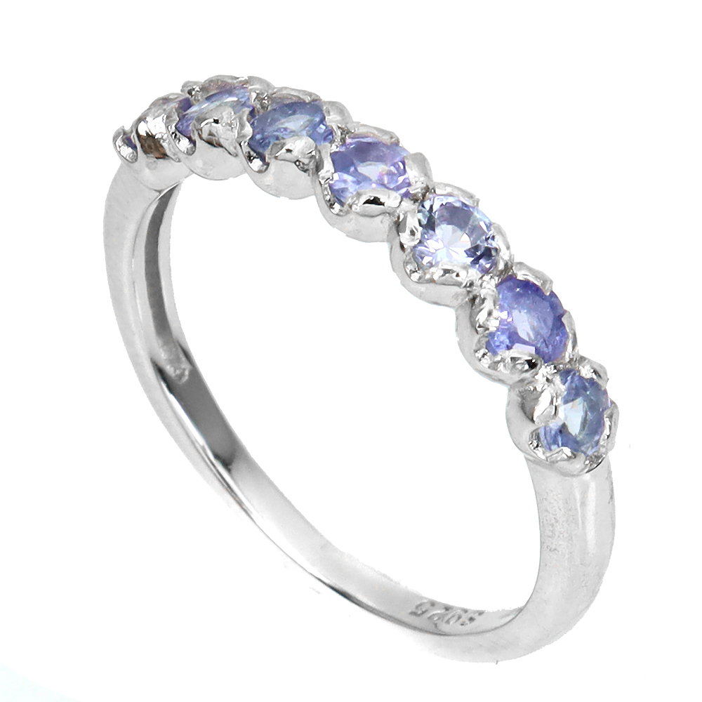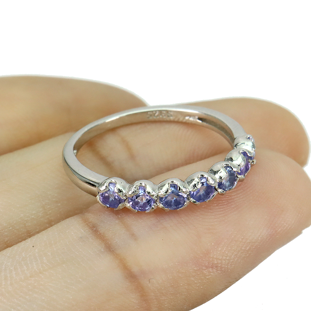 Unheated Round Tanzanite 3mm 14K White Gold Plate 925 Sterling Silver Ring 7