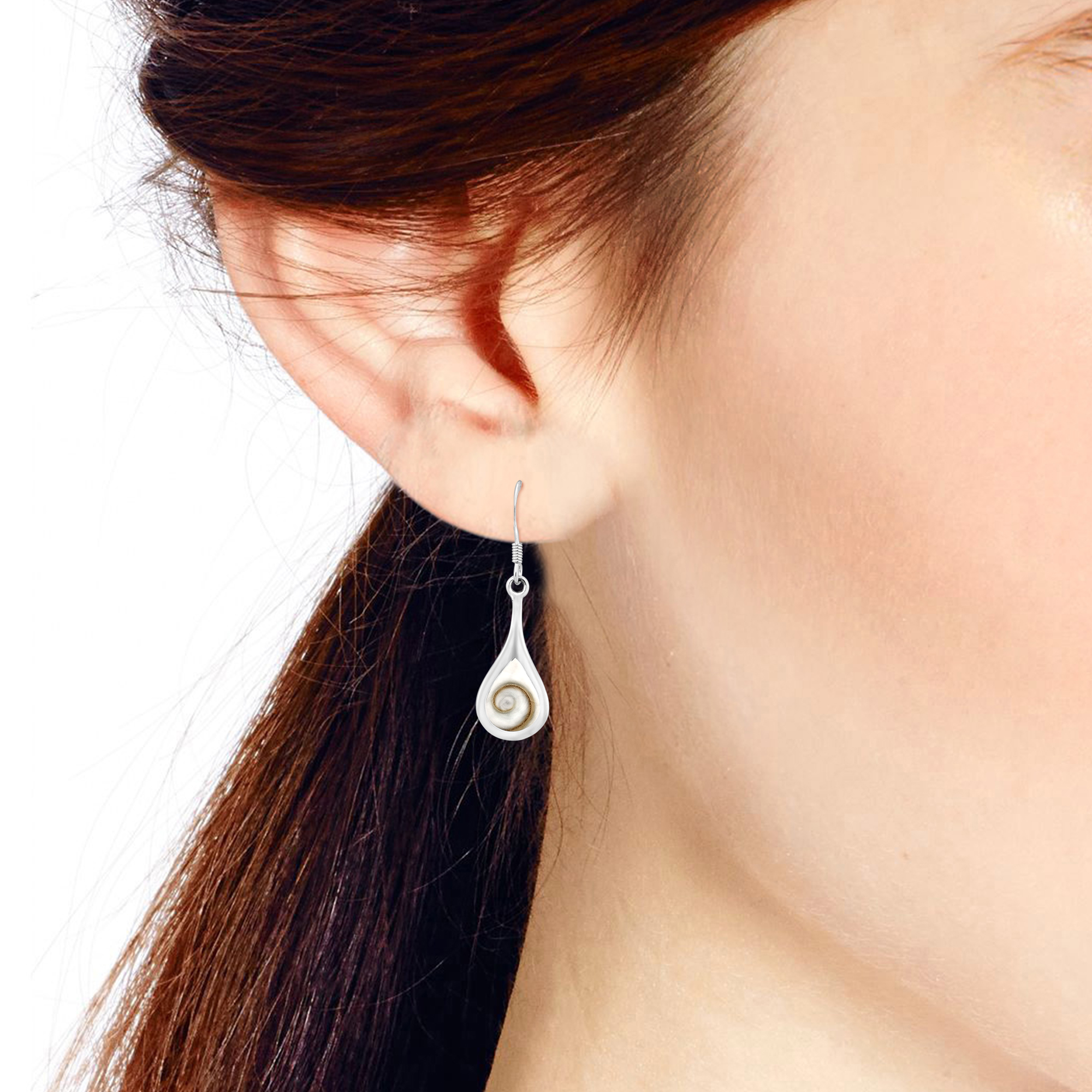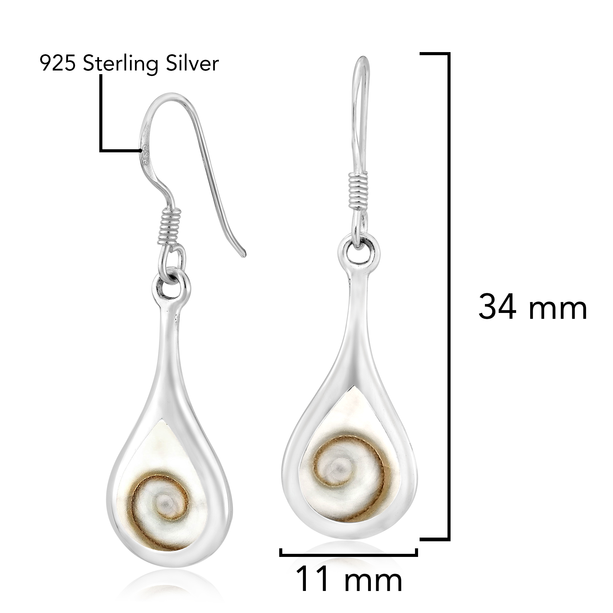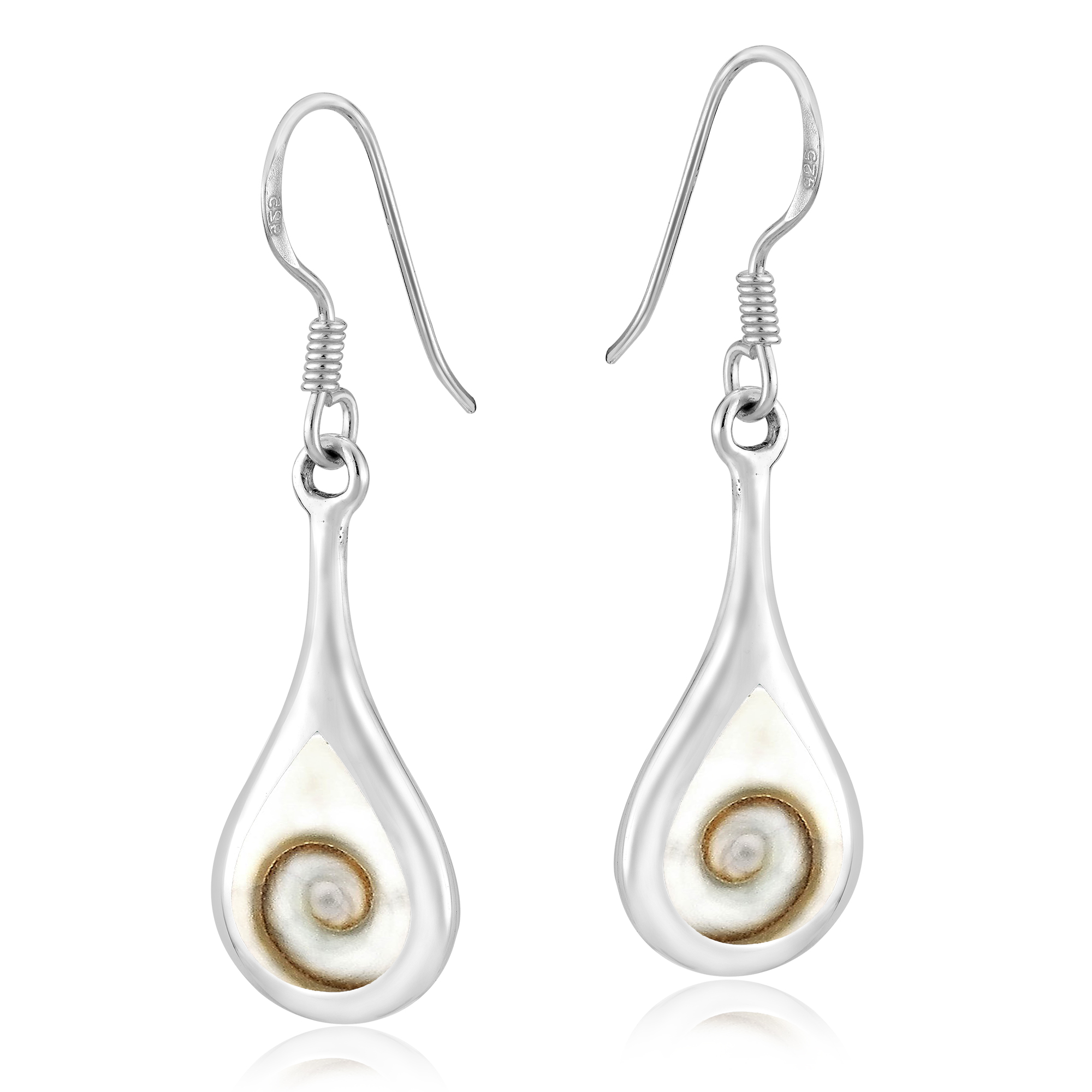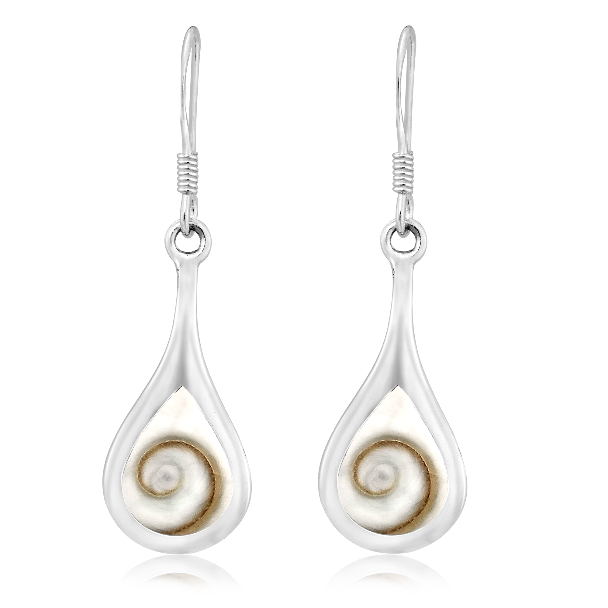 Enchanting Teardrop Swirl Shiva Shell .925 Silver Dangle Earrings |
