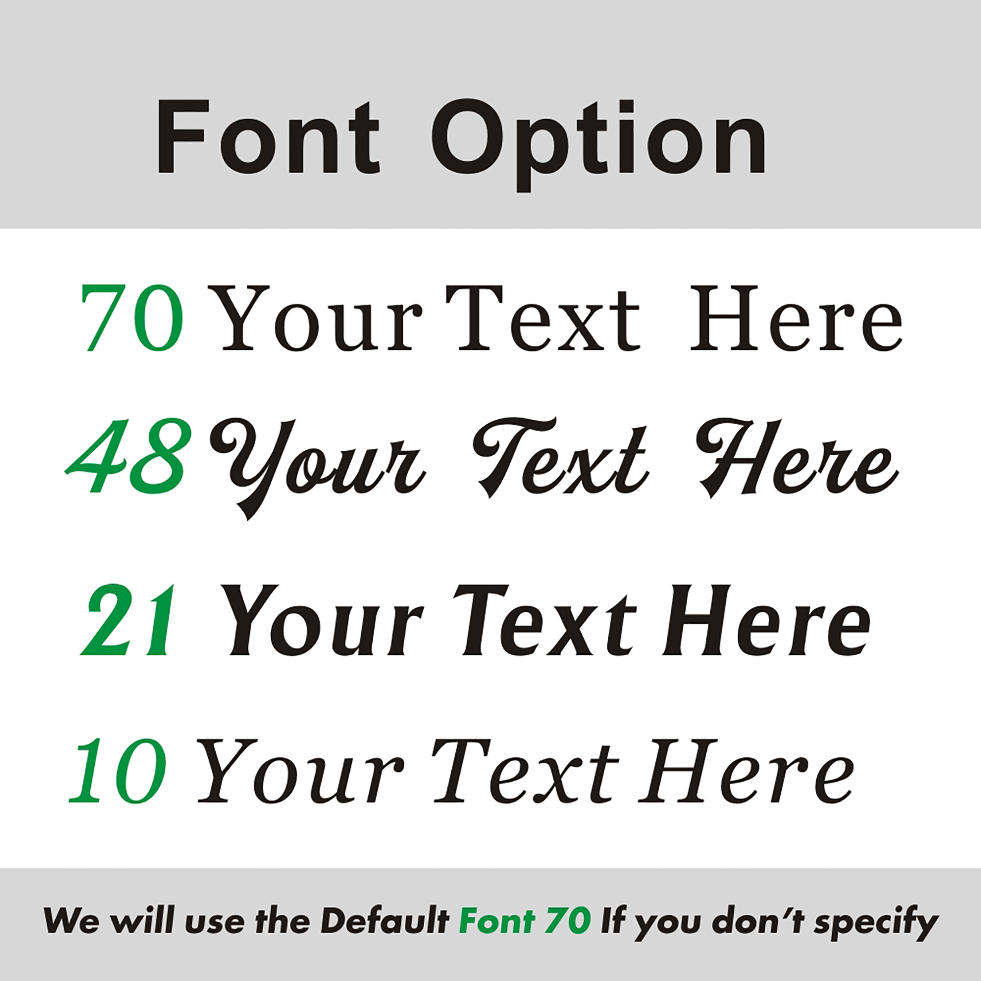 (If you don't specify,we will use default Font 70)