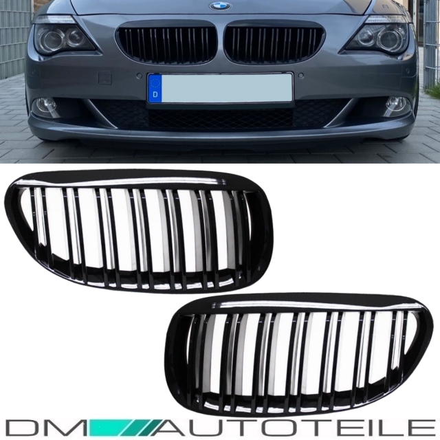 SET Doppelsteg Kühlergrill Schwarz GLANZ Performance passt für BMW E63 E64 02-10