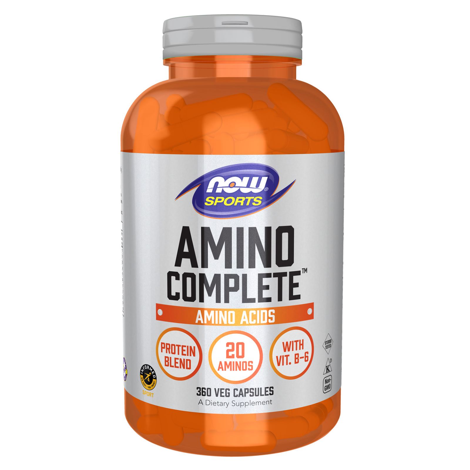 NOW® Sports Amino Complete™ offers a balanced blend of protein and free-form amino acids. Natural color variation may occur in this product.