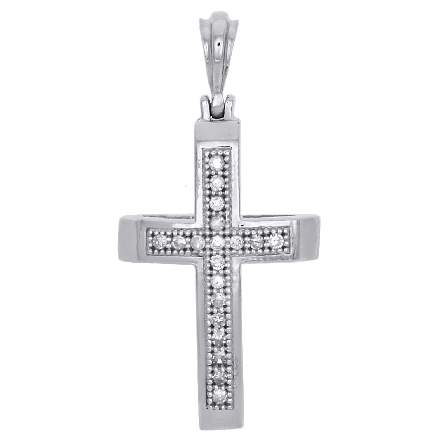 (0.8 gr. .925 Sterling Silver | Total Carat Weight: 0.05 ct. t.w. of White Diamonds | Length: 0.88" (including bail) | Width: 0.40" | Clarity: I2 - I3 | Color: J - K | Women's Real Genuine Diamond Cross Dommed Shape Design Fancy Religious Pendant Charm)