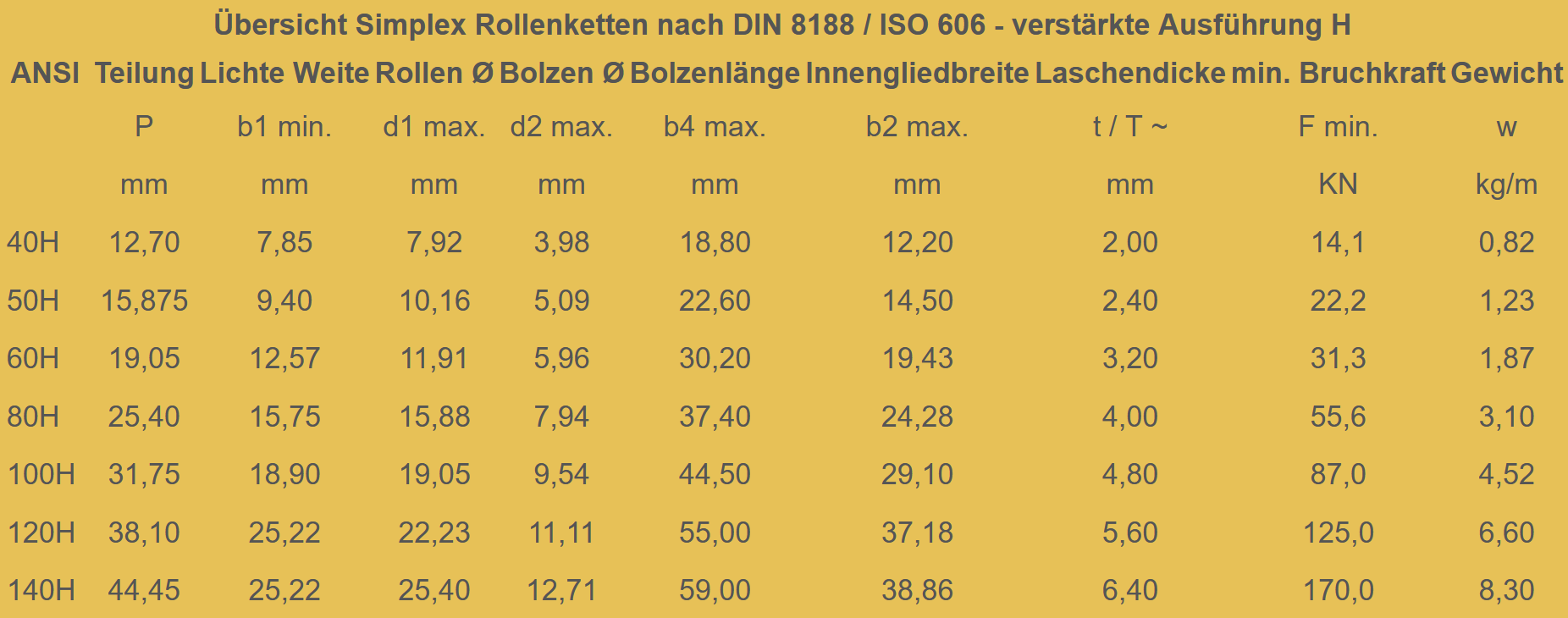 ANSI Rollenkette Verstärkt 5m für Kettenantriebe in Premiumqualität DIN 8188, ISO 606 - Ansi - amerikanische Bauart - Verstärkteausführung