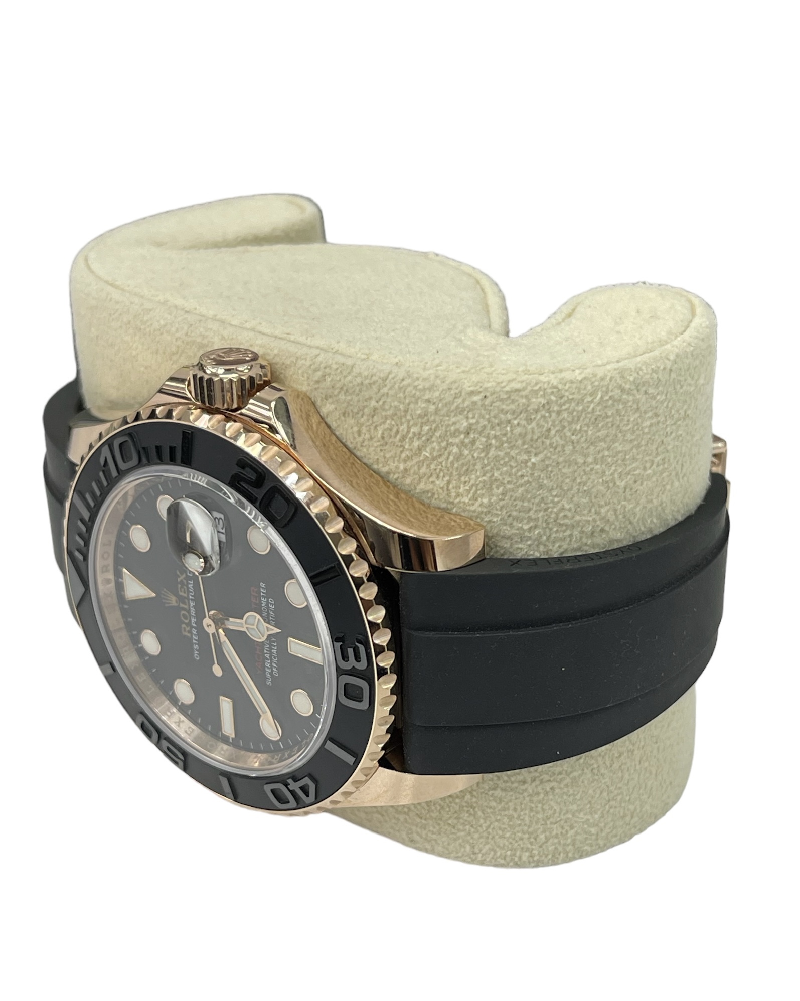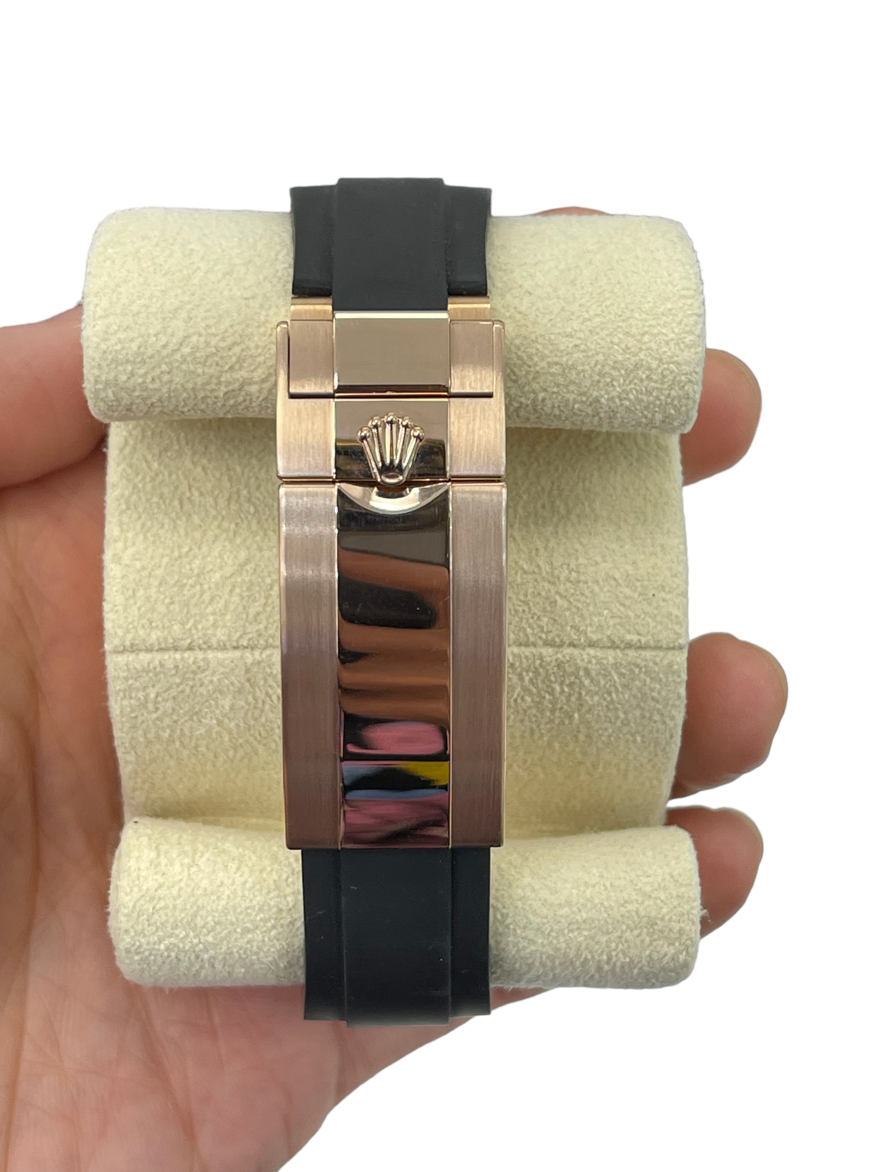 Bezel: Rolex Oysterflex Black Rubber Bracelet with Original 18k Rose Gold Deployment Buckle