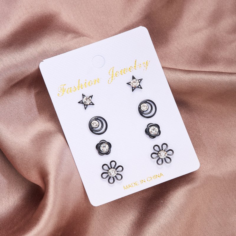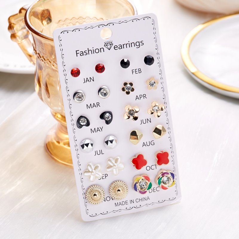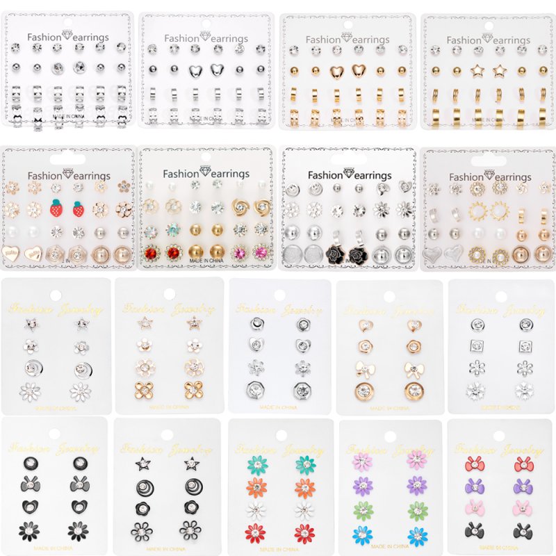 Wholesale 4/12 Earrings Set Rhinestone Crystal Pearl Women Stud Party Jewelry