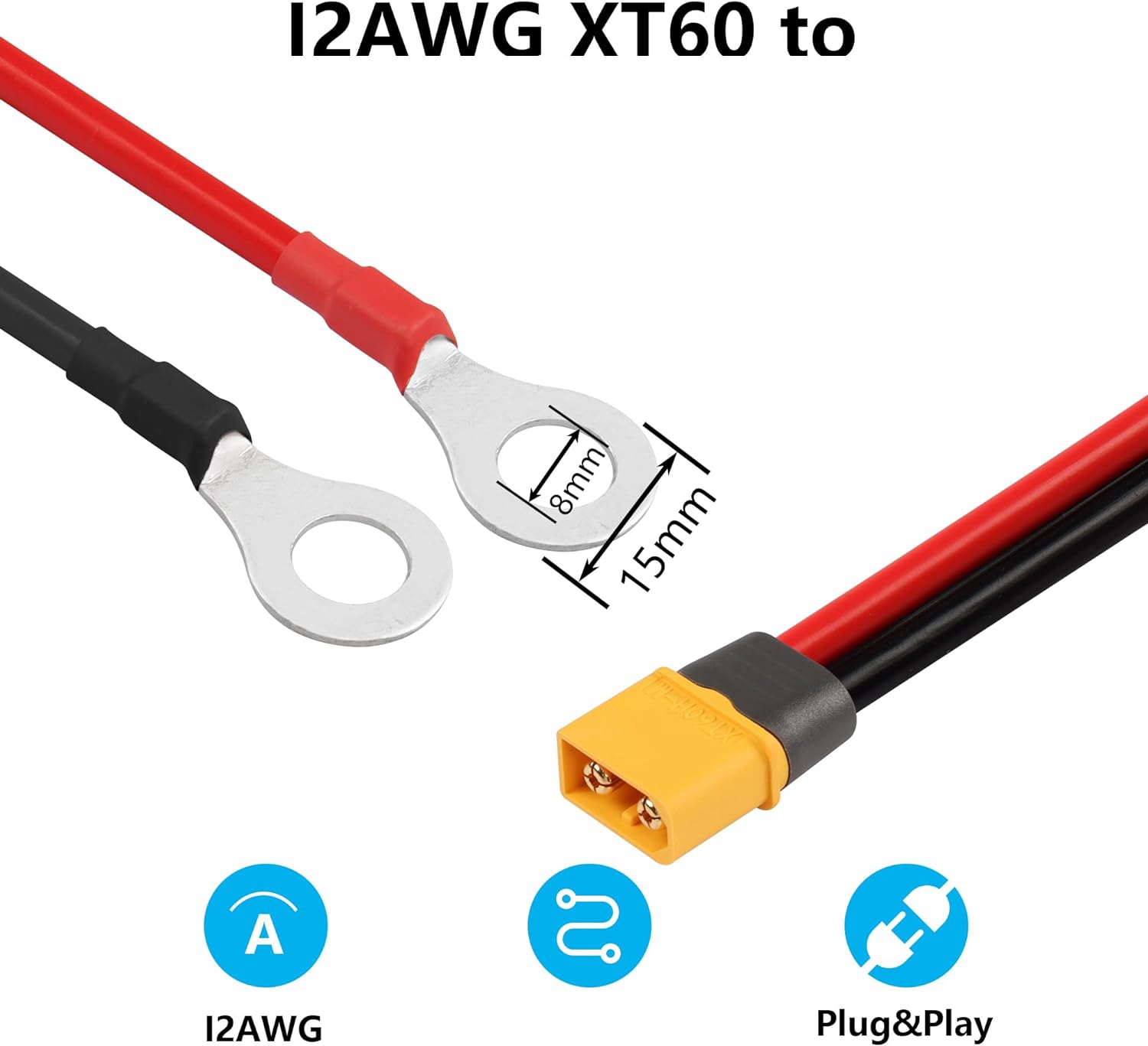 Durable:XT60 female to M8 O ring terminal cable,12AWG silicon wire,best