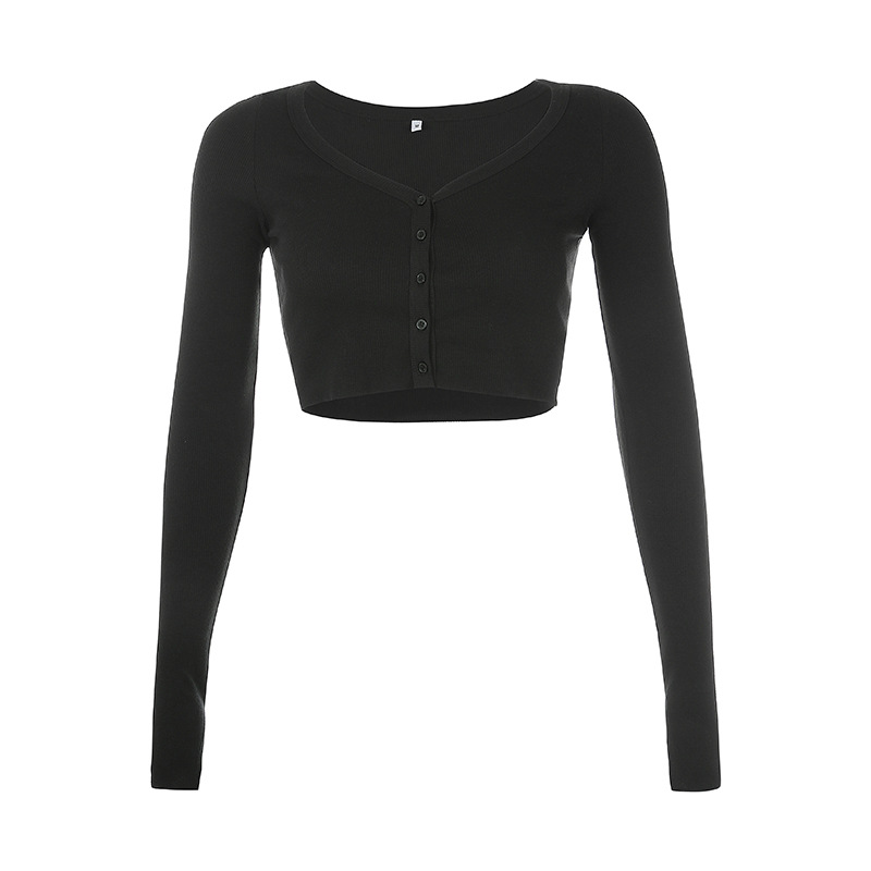 Feature: Long sleeve,Button,V-neck