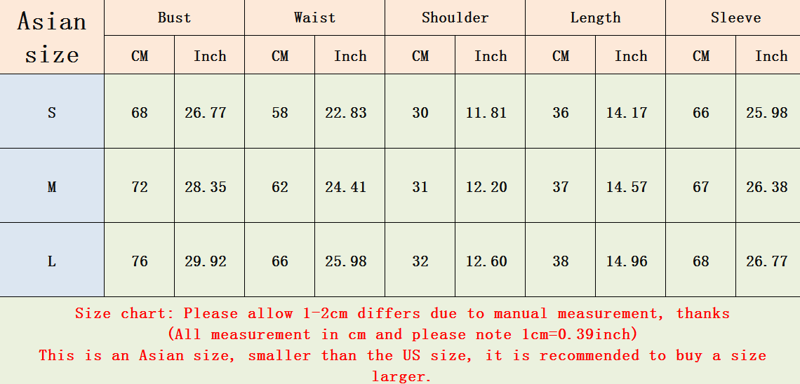 Please allow 1-2cm(1cm=0.39inch 1inch=2.54cm) differs due to manual measurement. Please take the item as the standard,thanks.